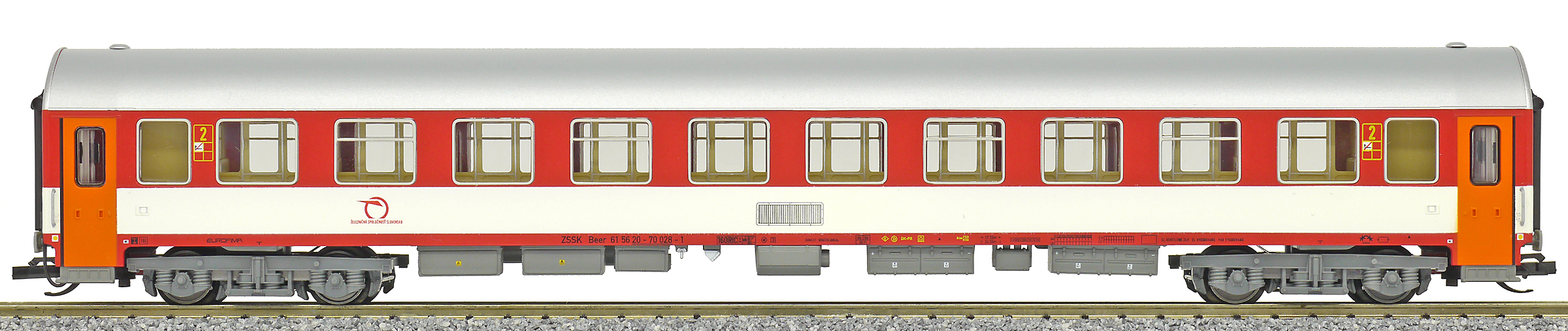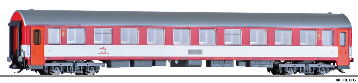 | rychlíkový vůz červený-bílý s šedou střechou 2. tř. |