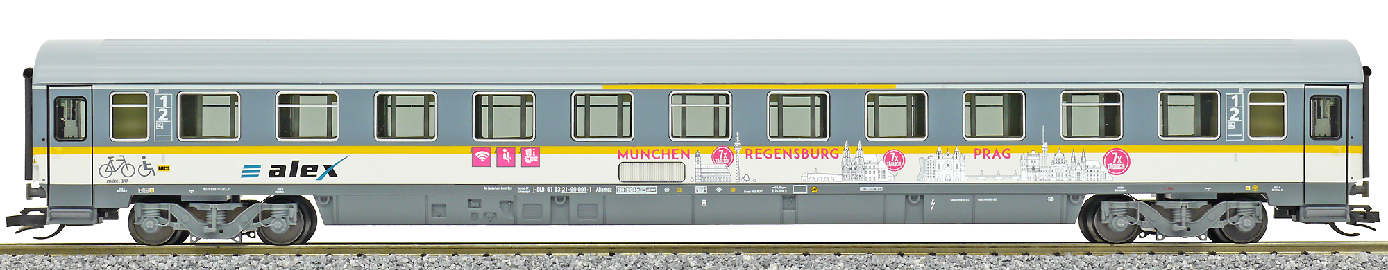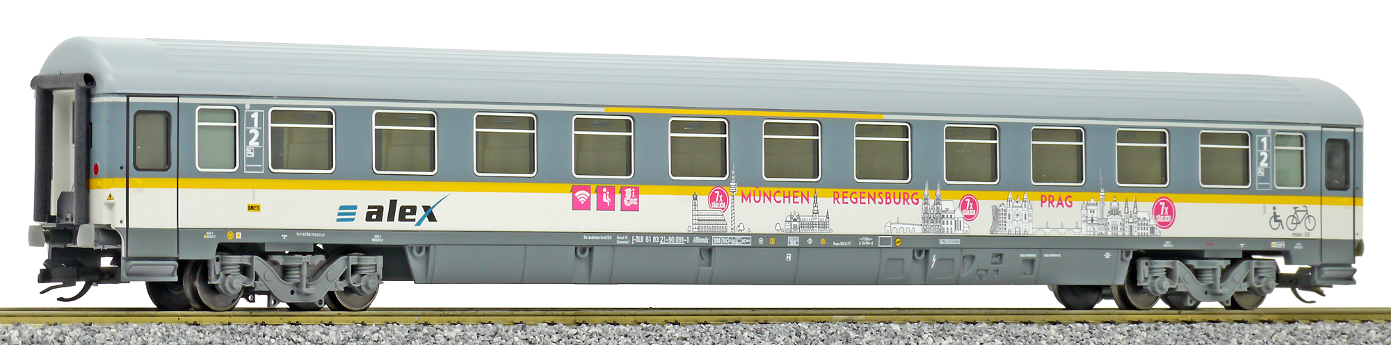 | rychlíkový vůz v barevném schematu „alex“ 1./2. tř. |