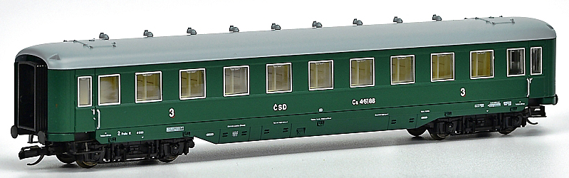 | osobní vůz zelený s šedou střechou 3. tř. |