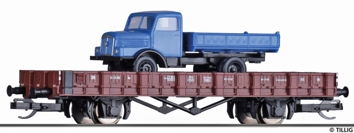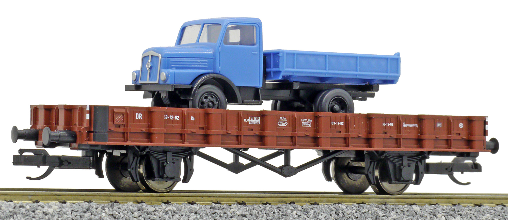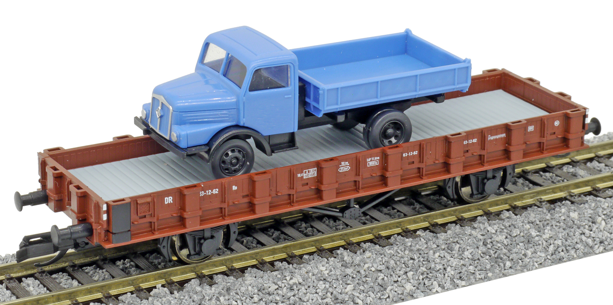 | nízkostěnný nákladní vůz červenohnědý ložený automobilem H3A Kipper |