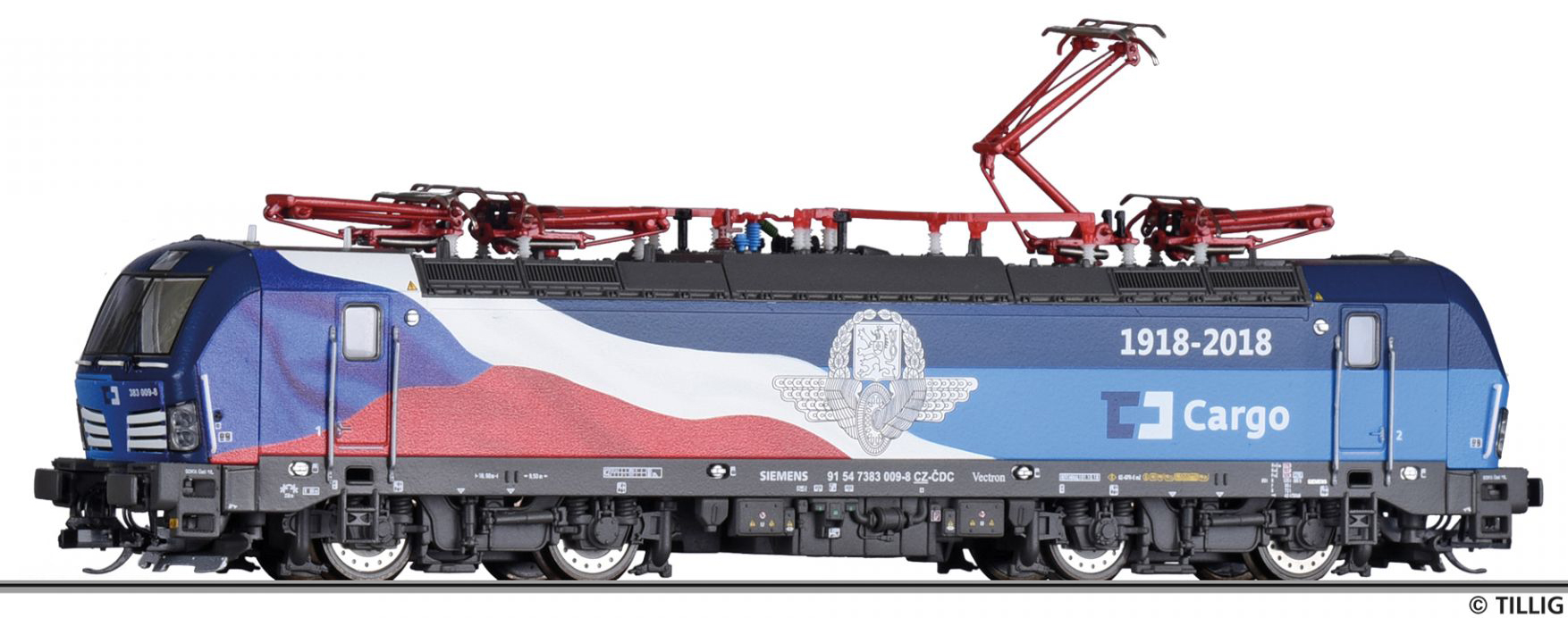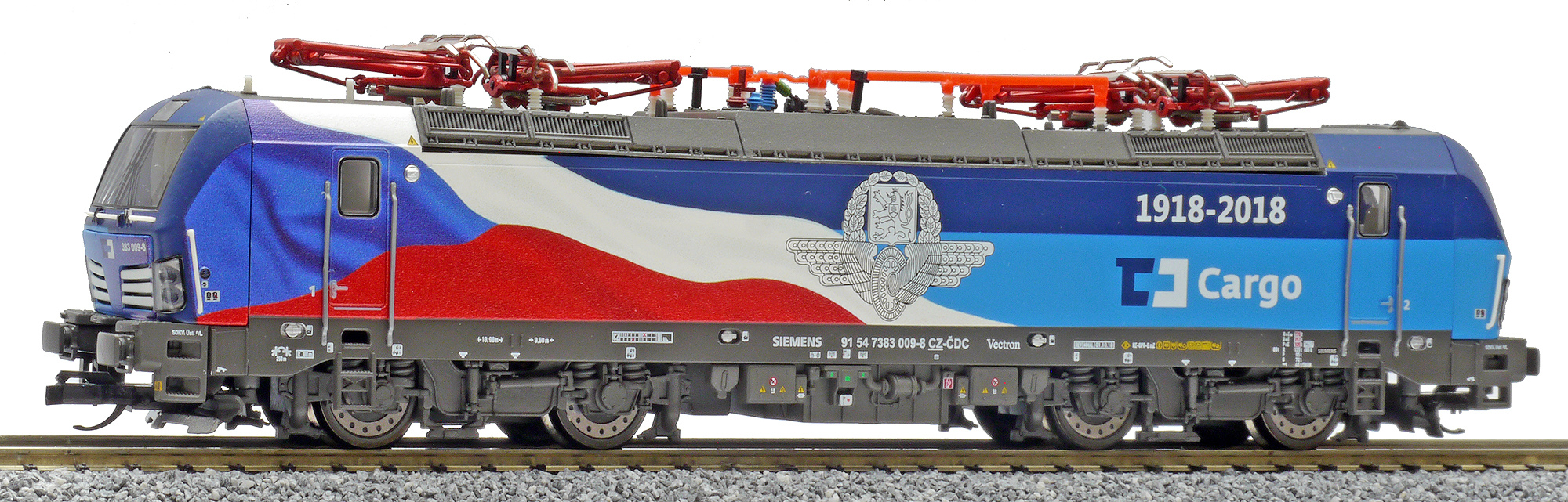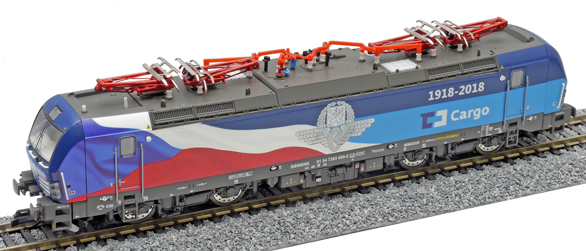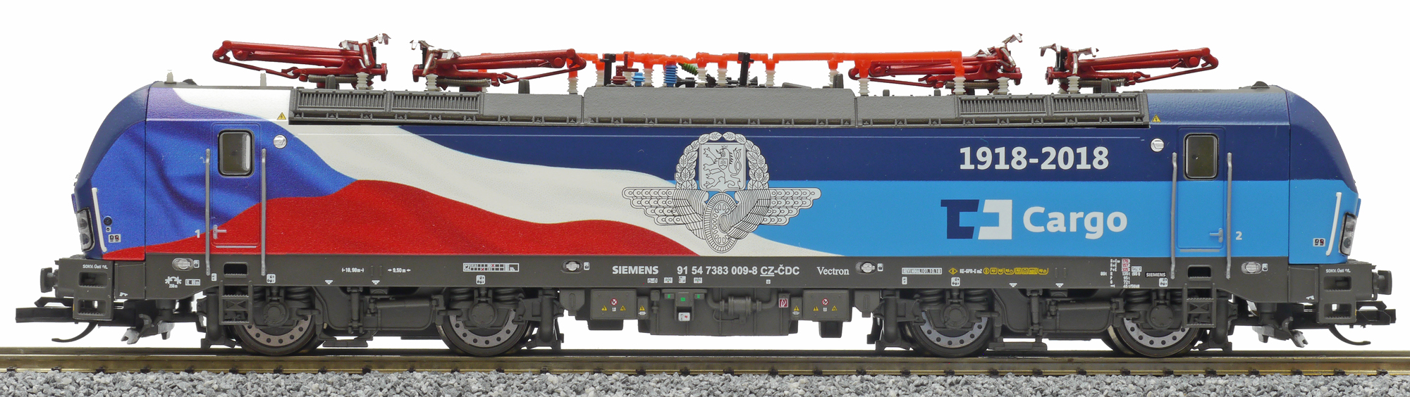 | elektrická lokomotiva s reklamním potiskem „100 Jahre Tschechien“ |