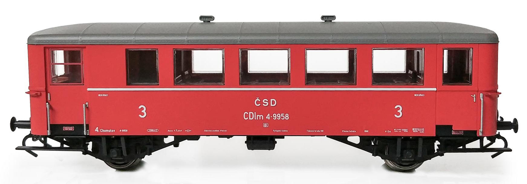| přívěsný vůz červený s šedou střechou 3. tř. |
