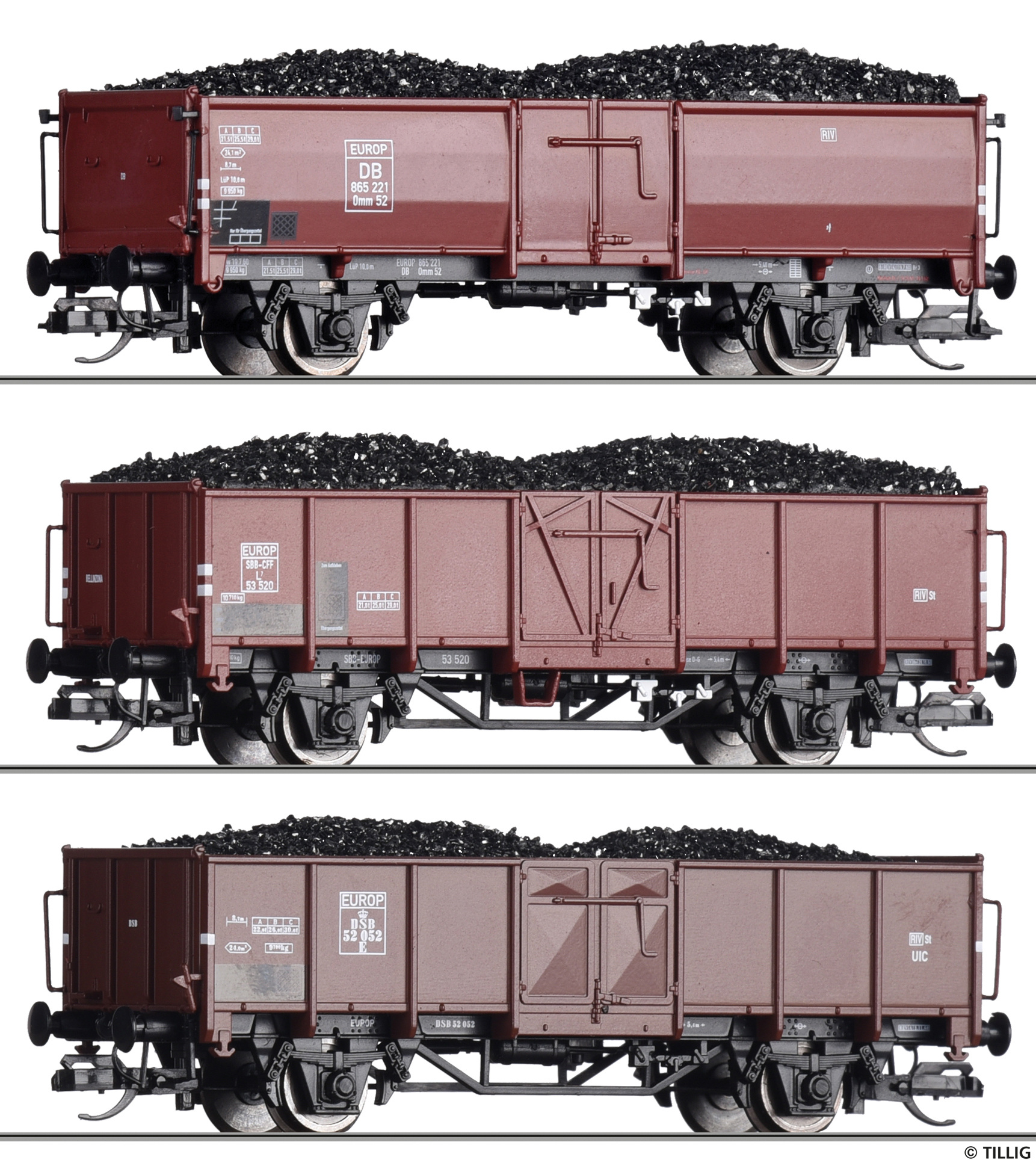 Popis   set tří otevřených nákladních vozů s nákladem uhlí