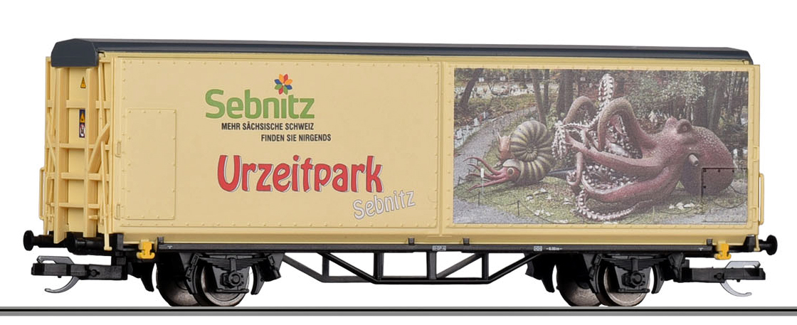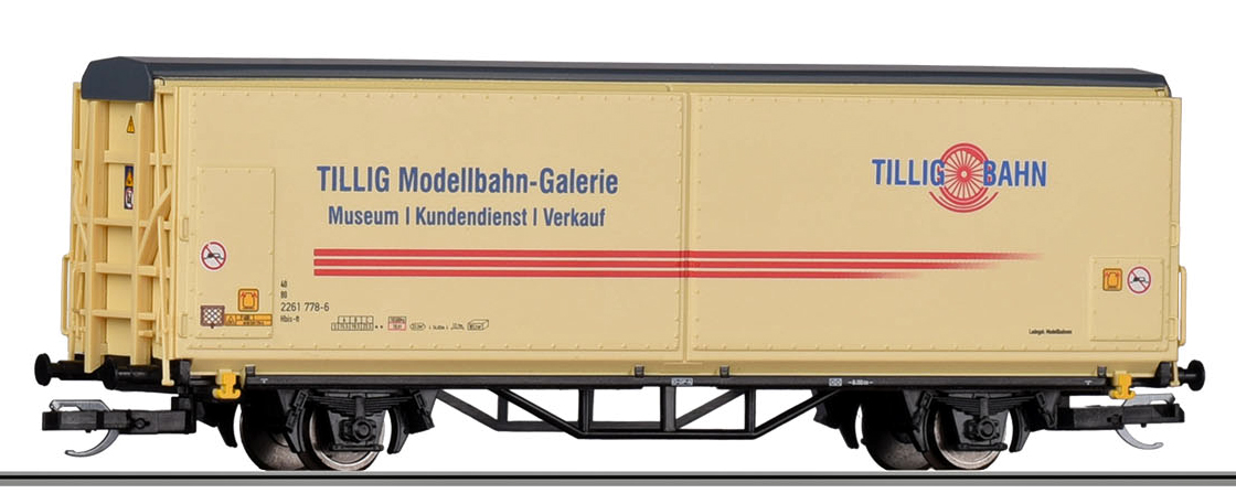 | krytý nákladní vůz s posuvnými bočnicemi a s reklamním potiskem „TILLIG/Sebnitz“ |