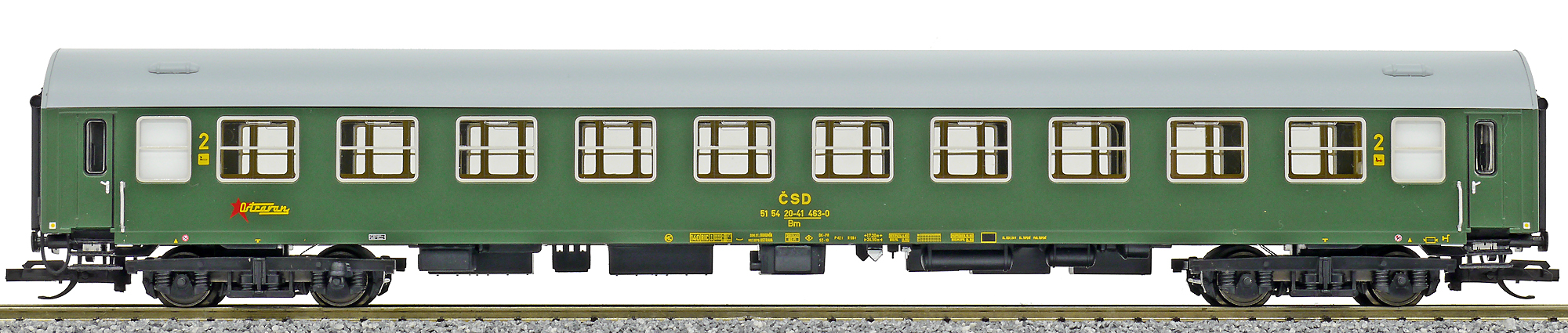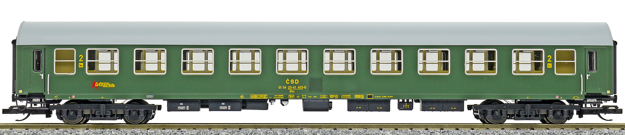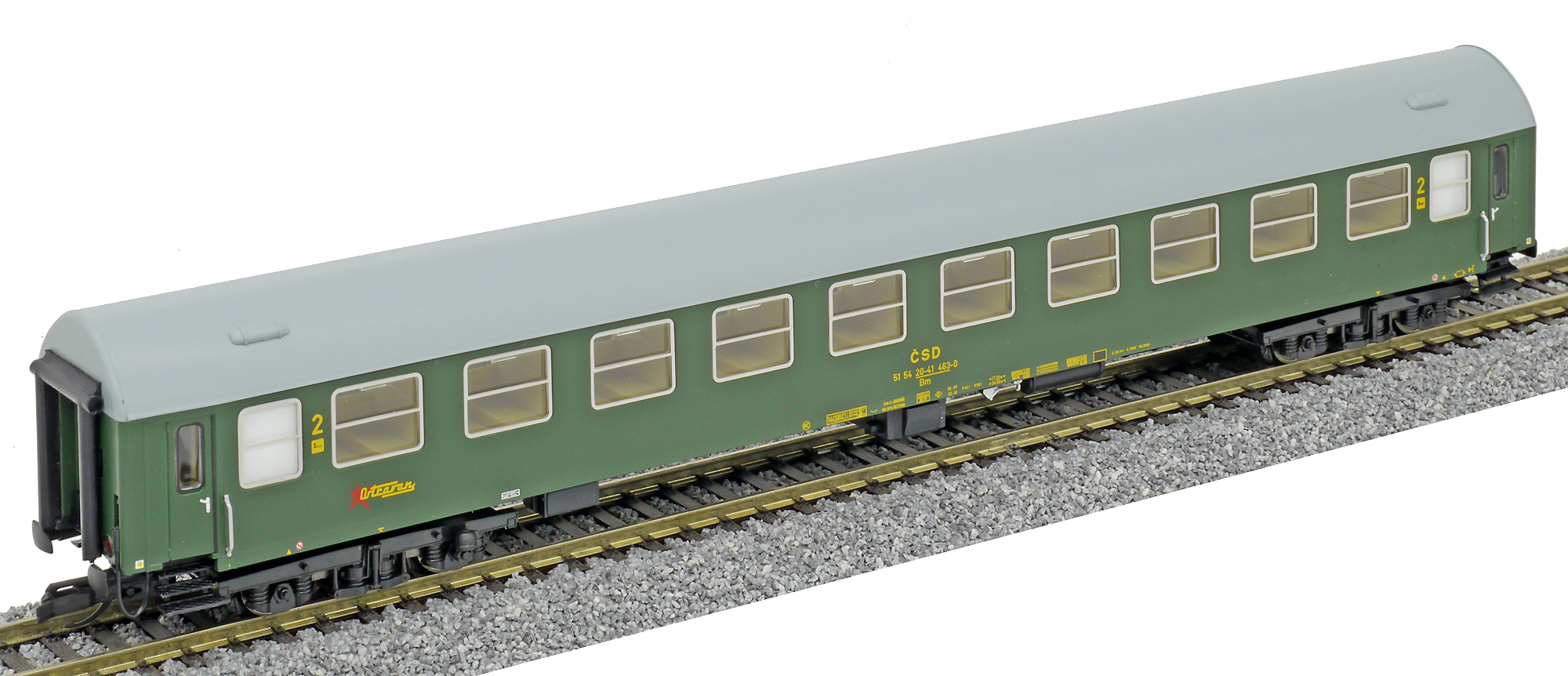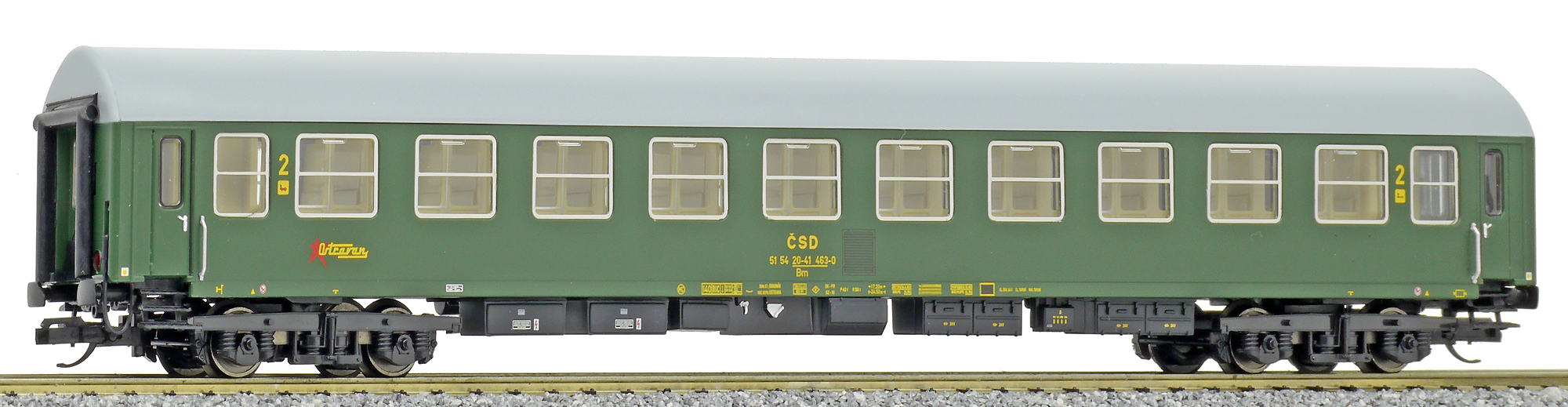 | rychlíkový vůz zelený s šedou střechou 2. tř. „Ostravan“ |