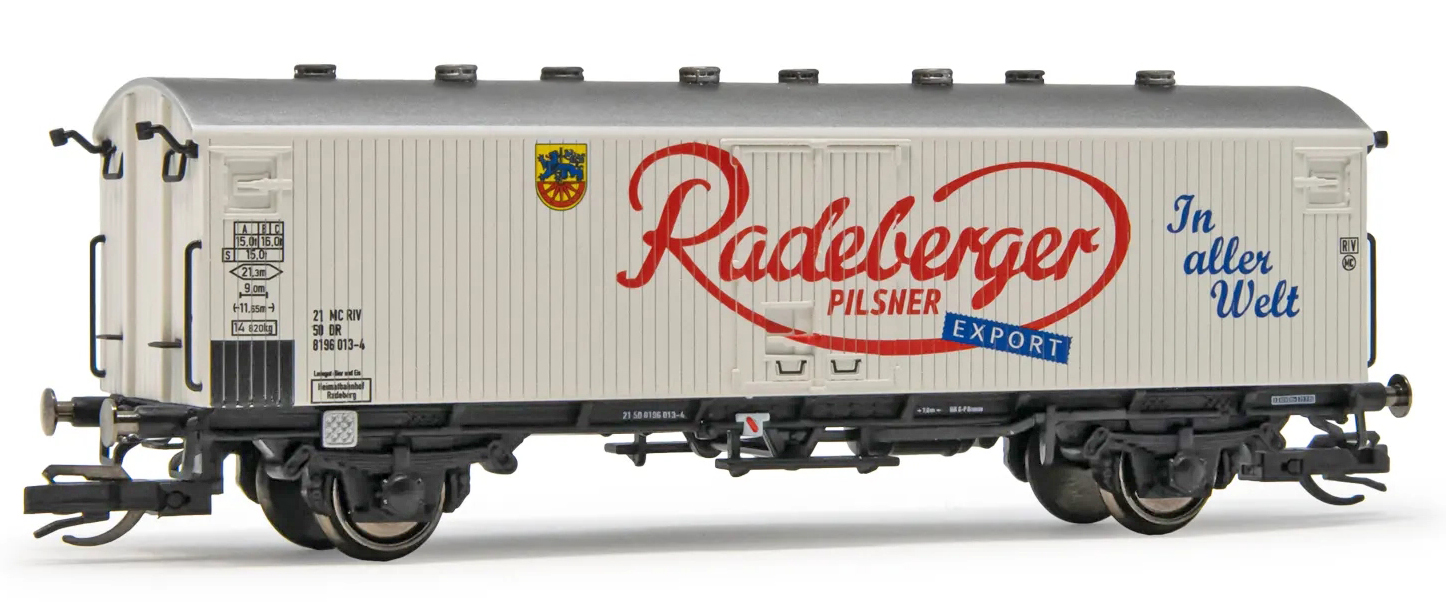 | chladící nákladní vůz bílý s šedou střechou „Radeberger Pilsner“ |