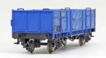 | otevřený nákladní vůz modrý, žluté popisy |