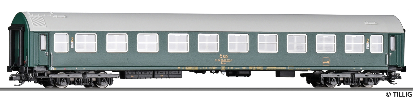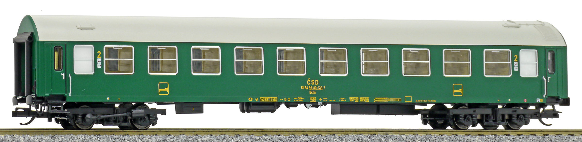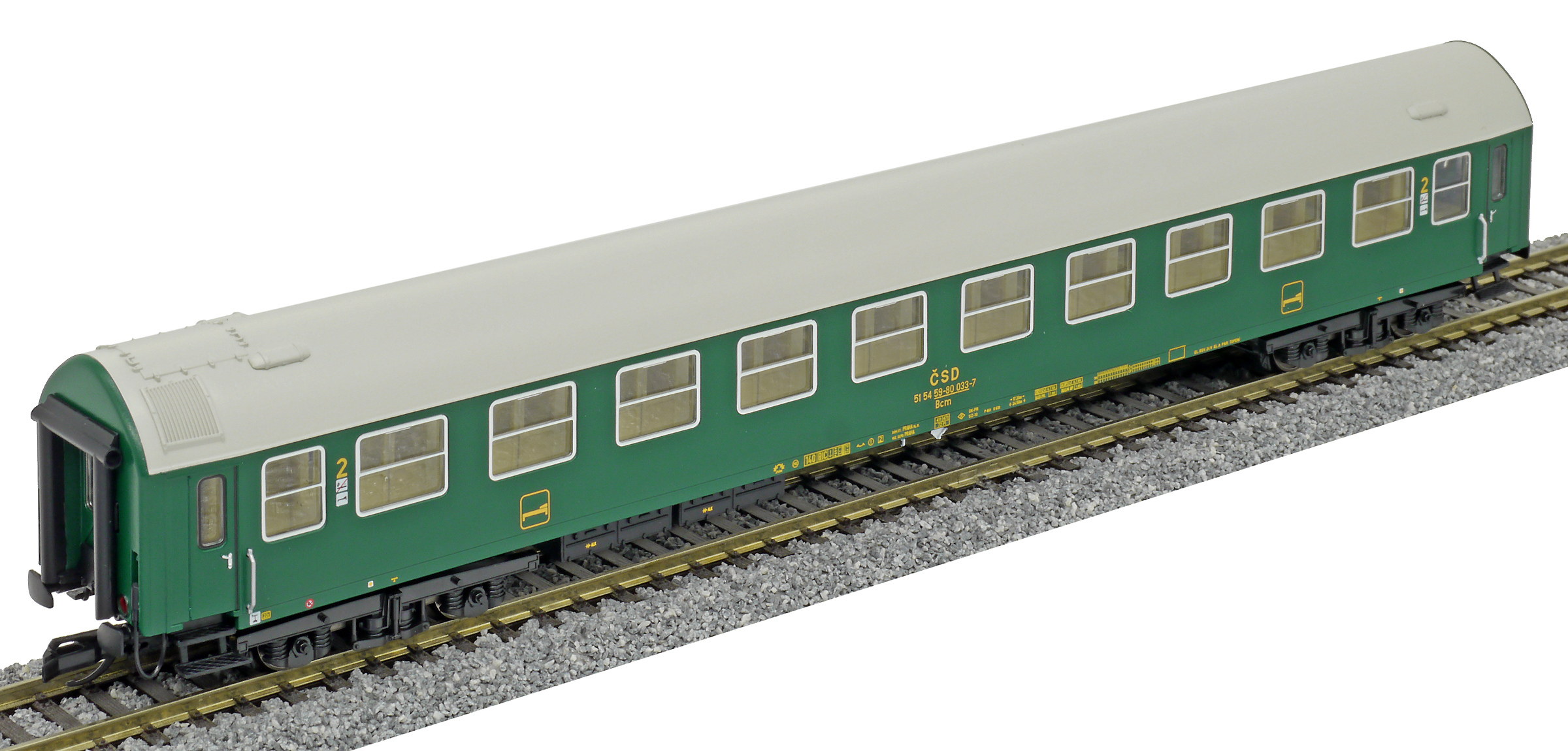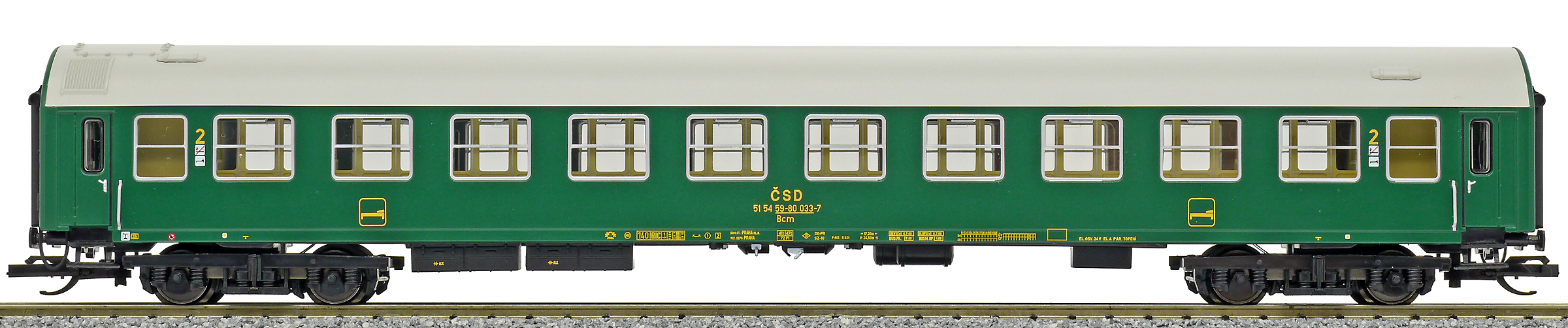 Popis   lehátkový vůz zelený s šedou střechou 2. tř.