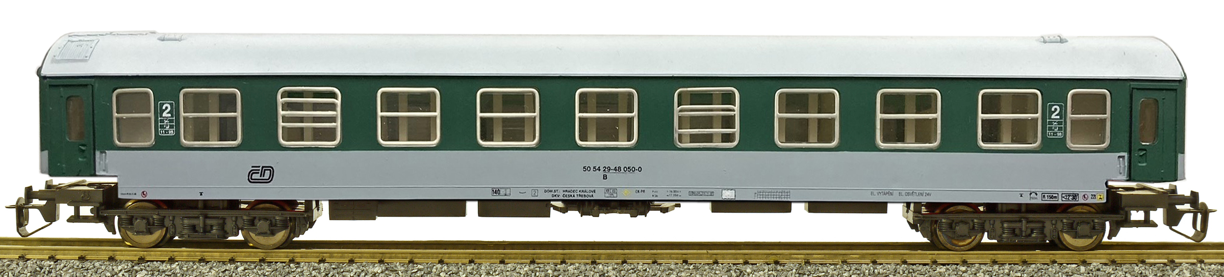 | rychlíkový vůz zelený-světle šedý s šedou střechou 2. tř., bufetový oddíl |