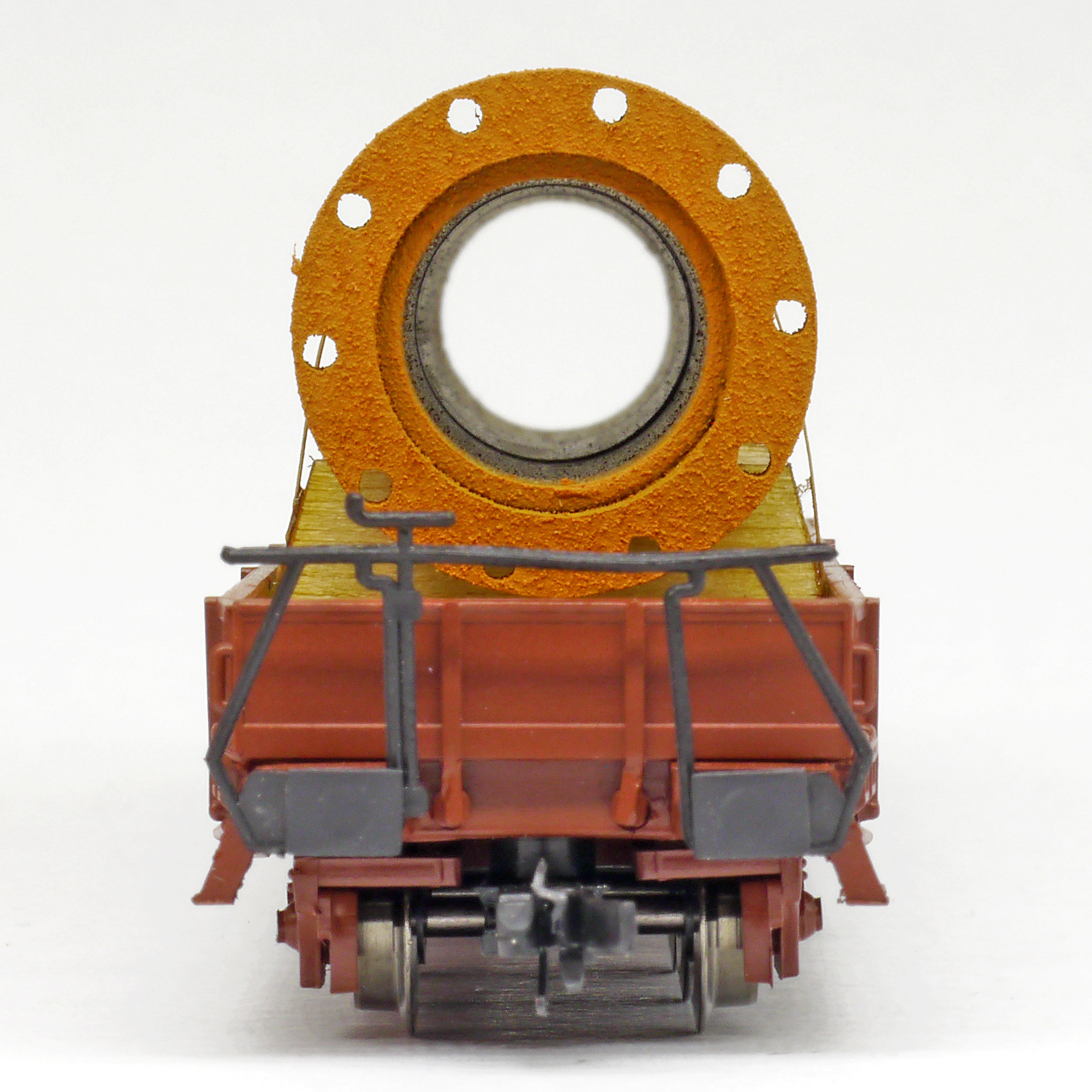 | nízkostěnný nákladní vůz červenohnědý s nákladem přírubové trubky |