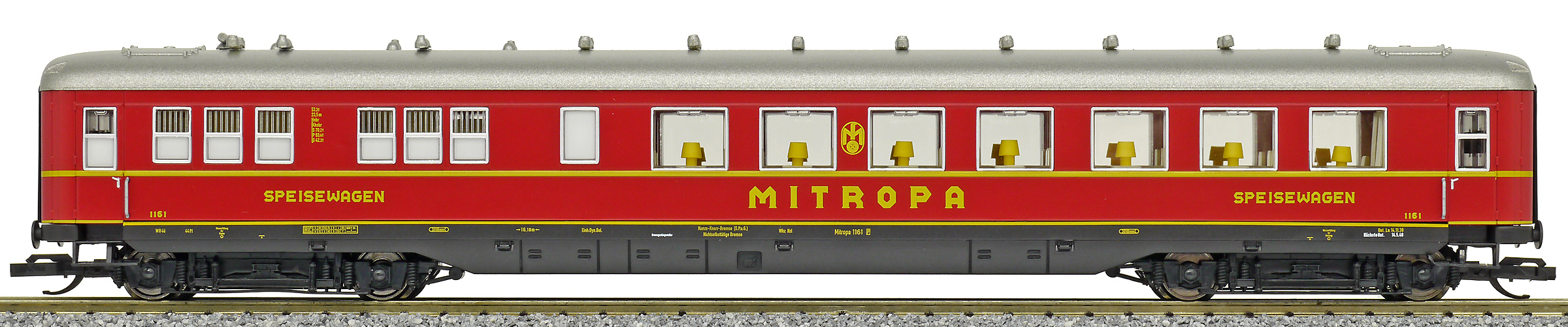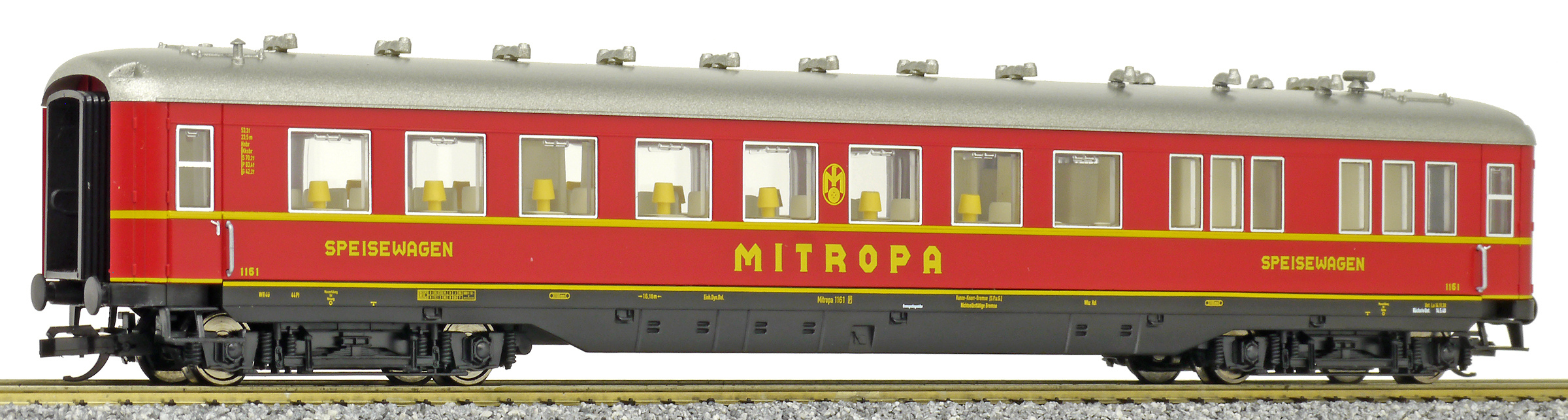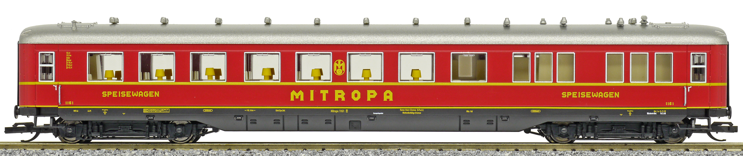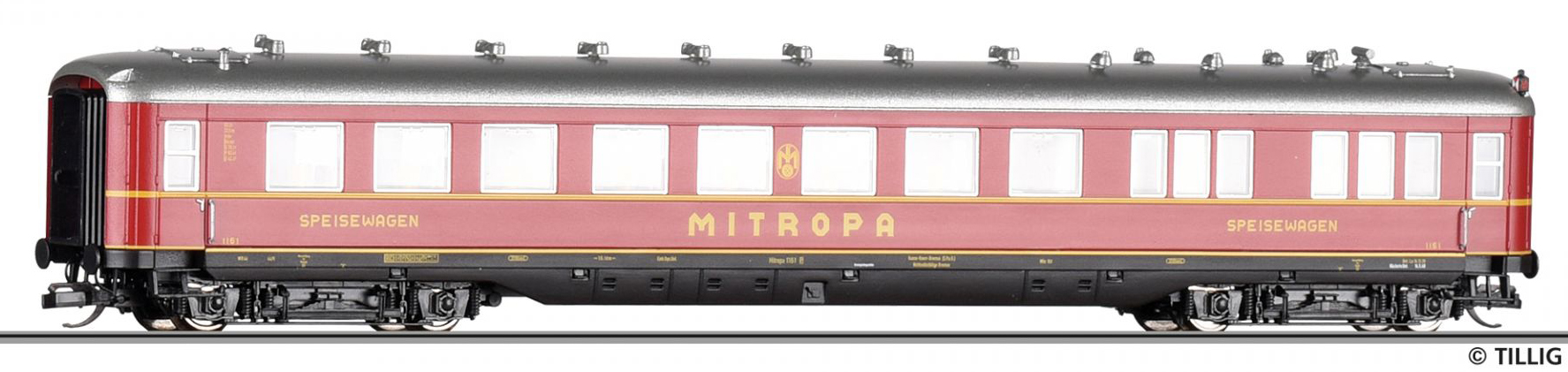 | jídelní vůz červený s šedou stříbrnou „MITROPA“ |