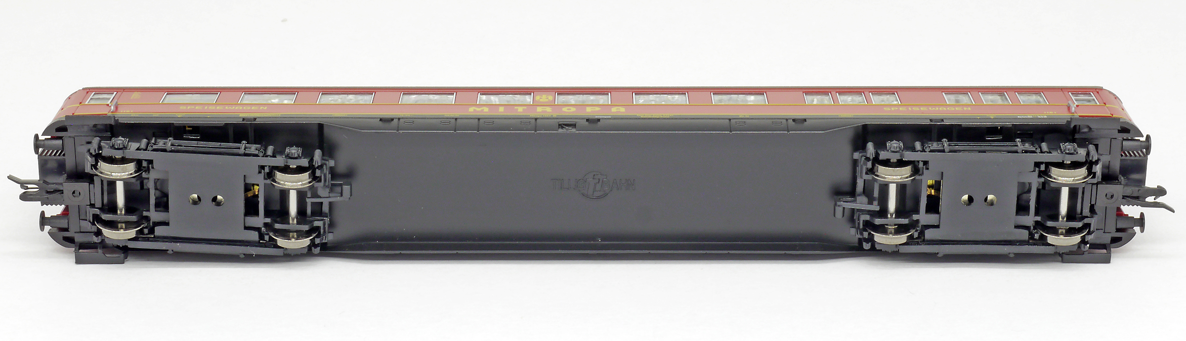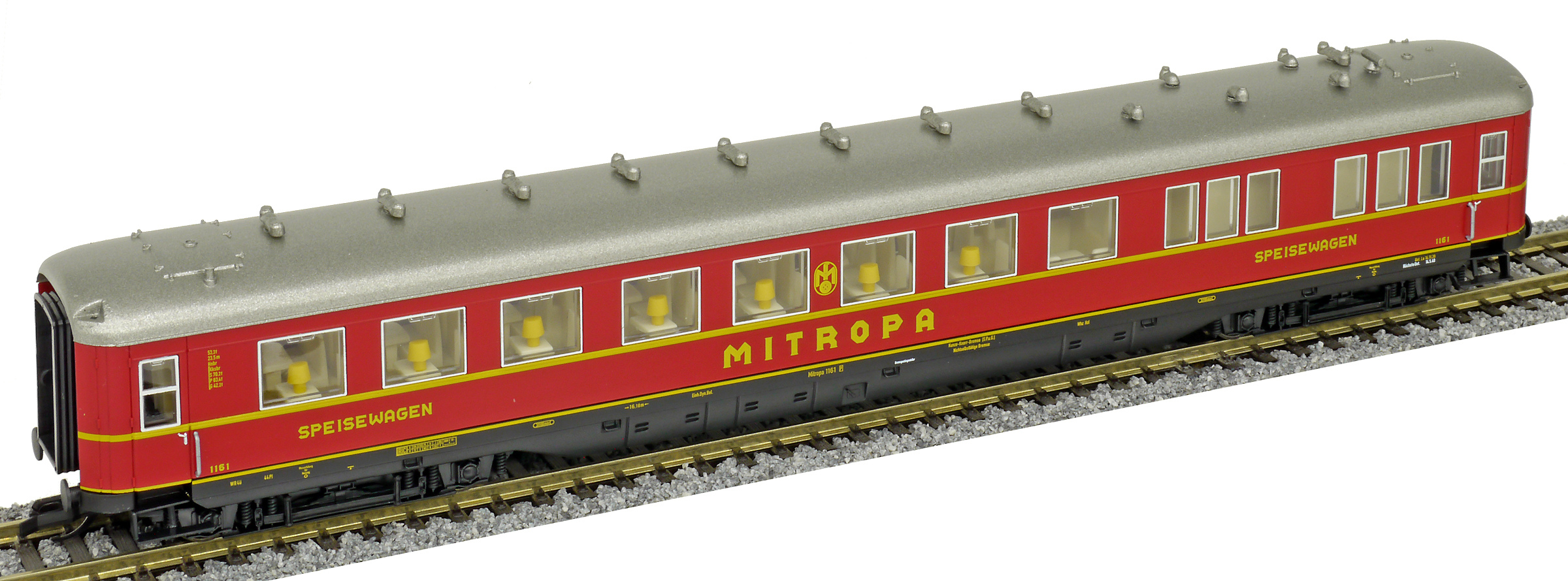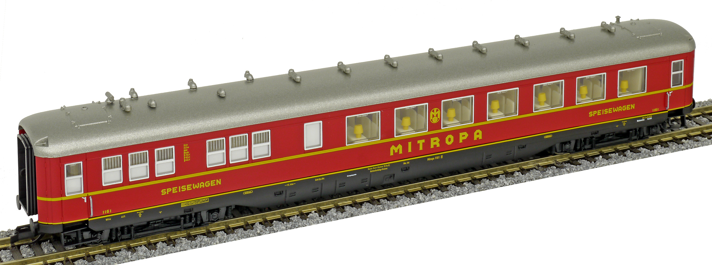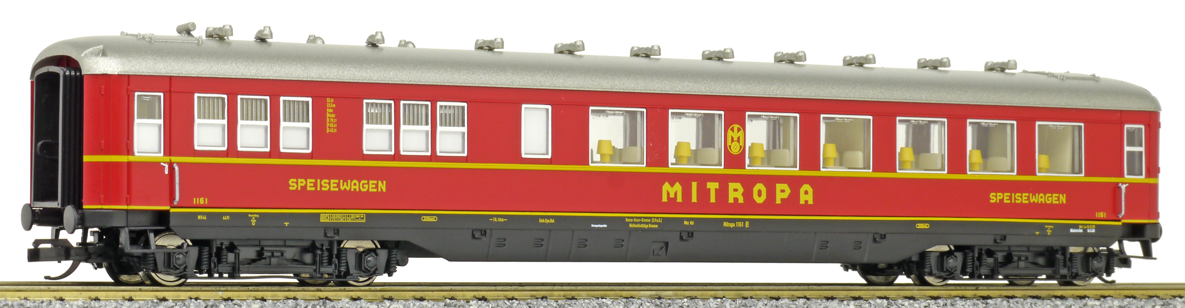 | jídelní vůz červený s šedou stříbrnou „MITROPA“ |