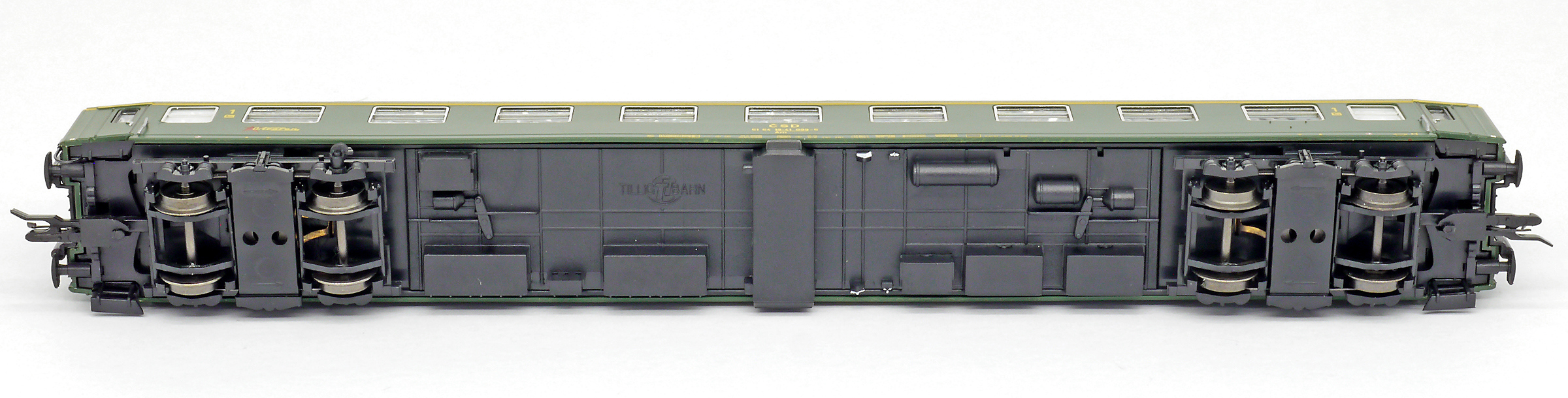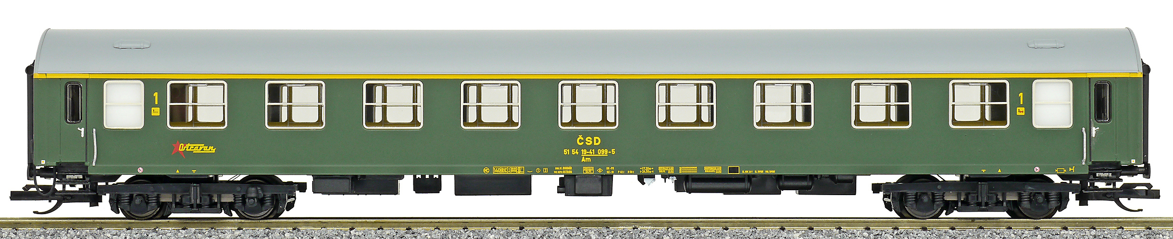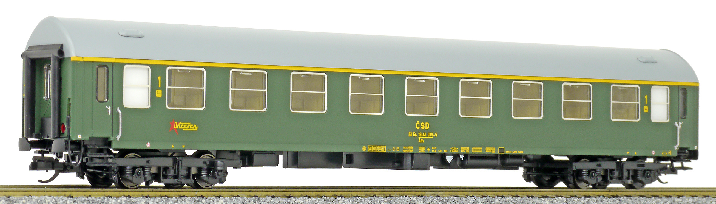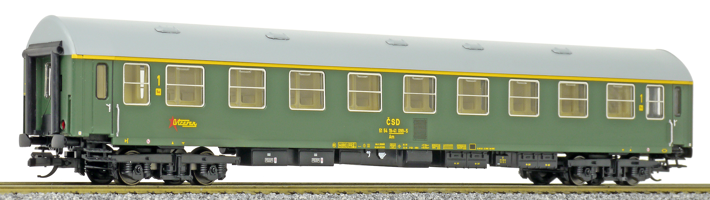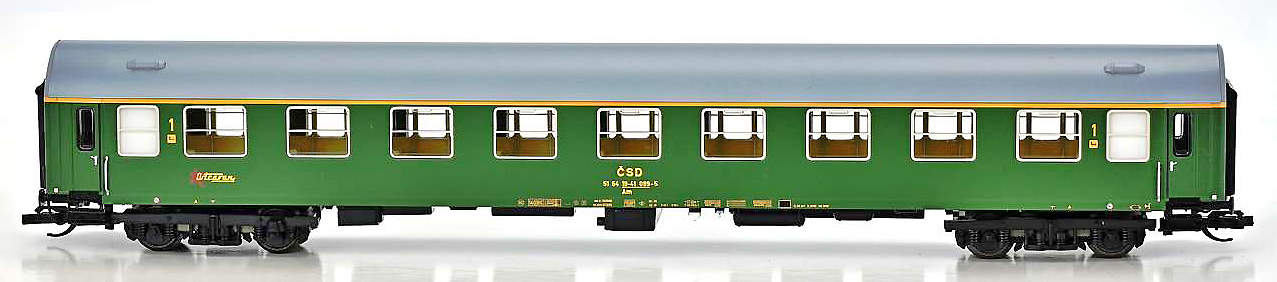| rychlíkový vůz zelený s šedou střechou 1. tř. „Ostravan“ |