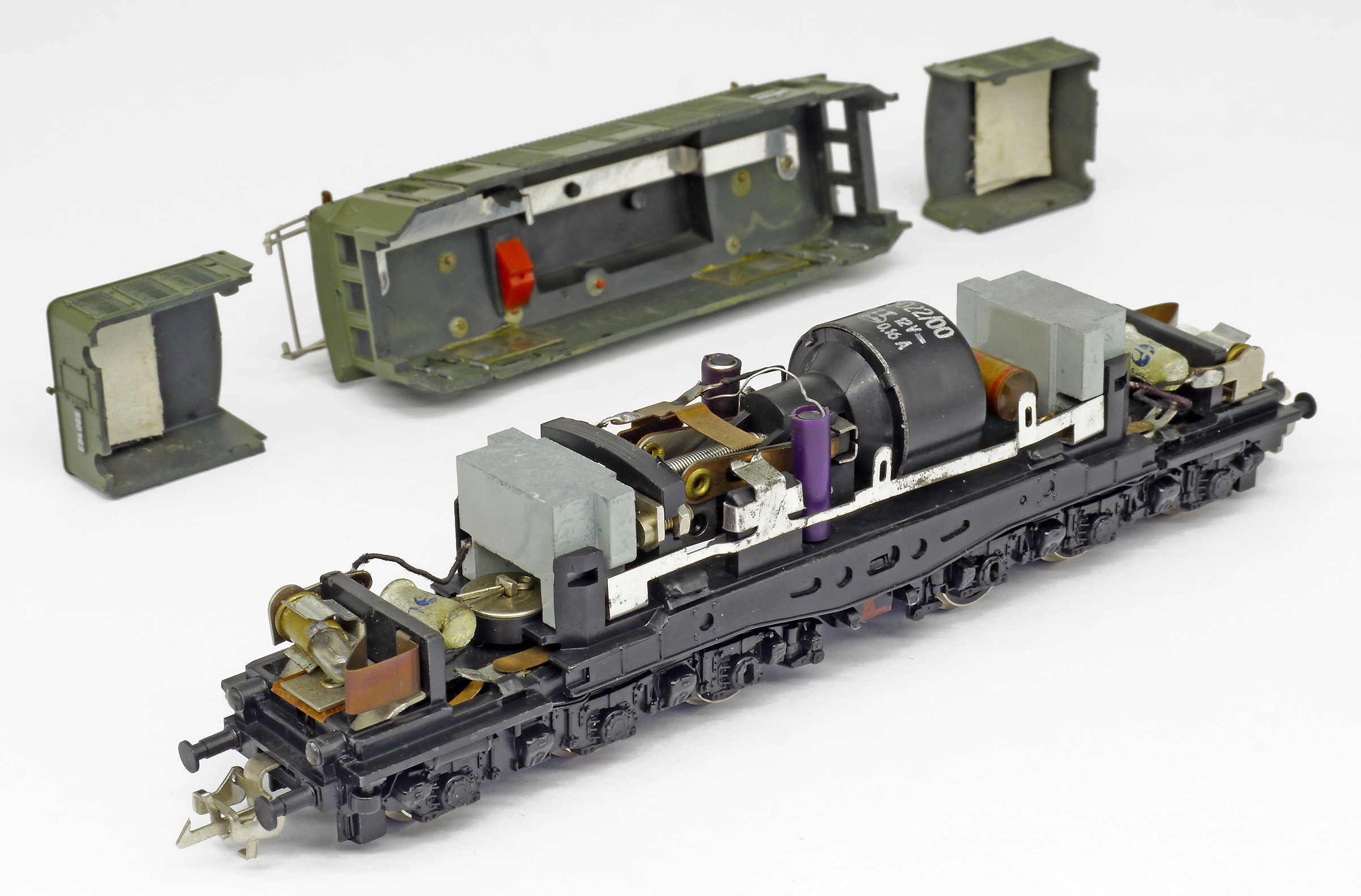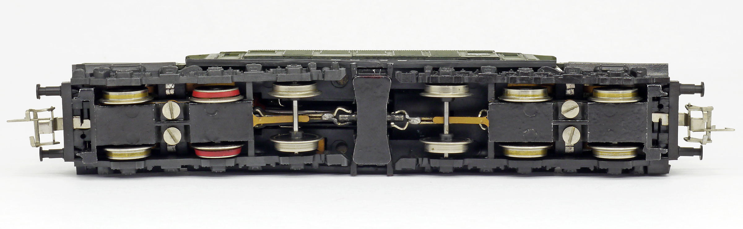 Popis   elektrická lokomotiva zelená s šedou střechou, černý rám