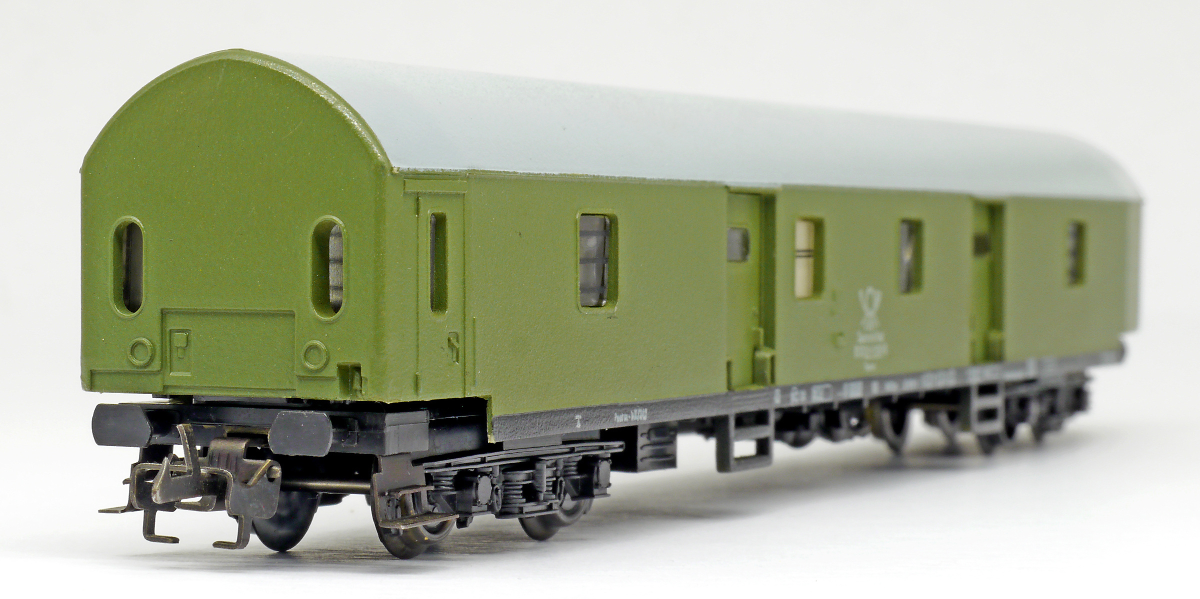 | poštovní vůz zelený s šedou střechou |