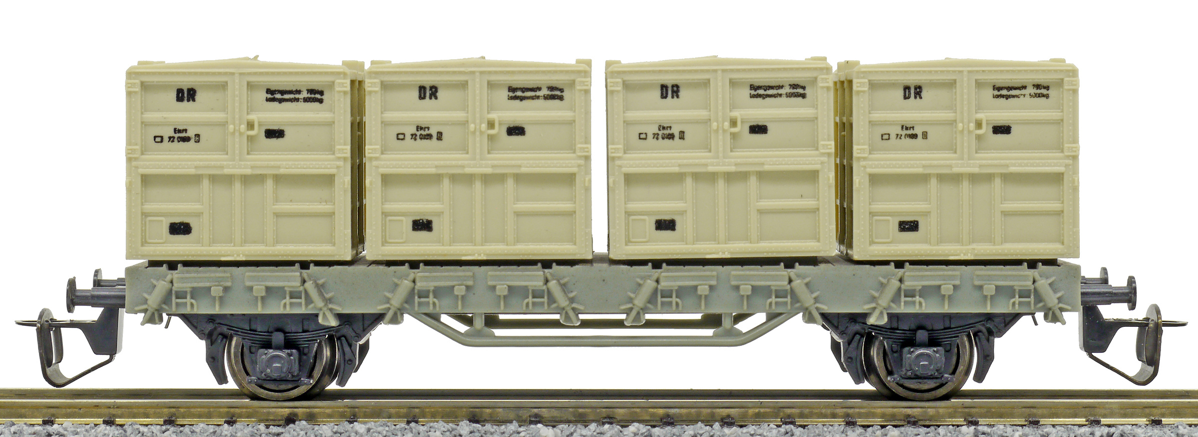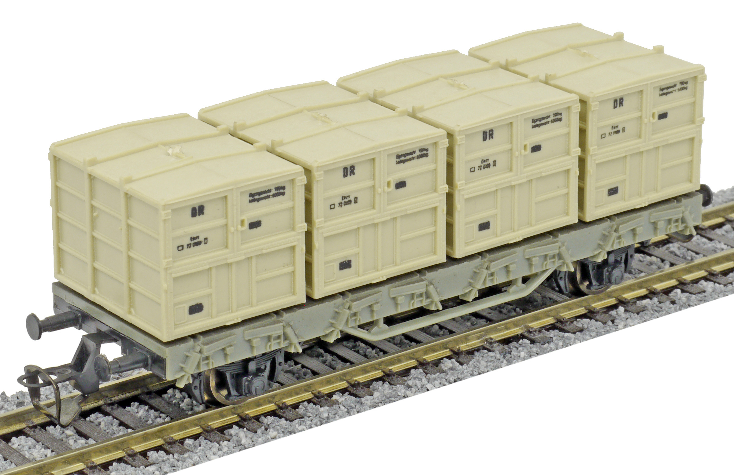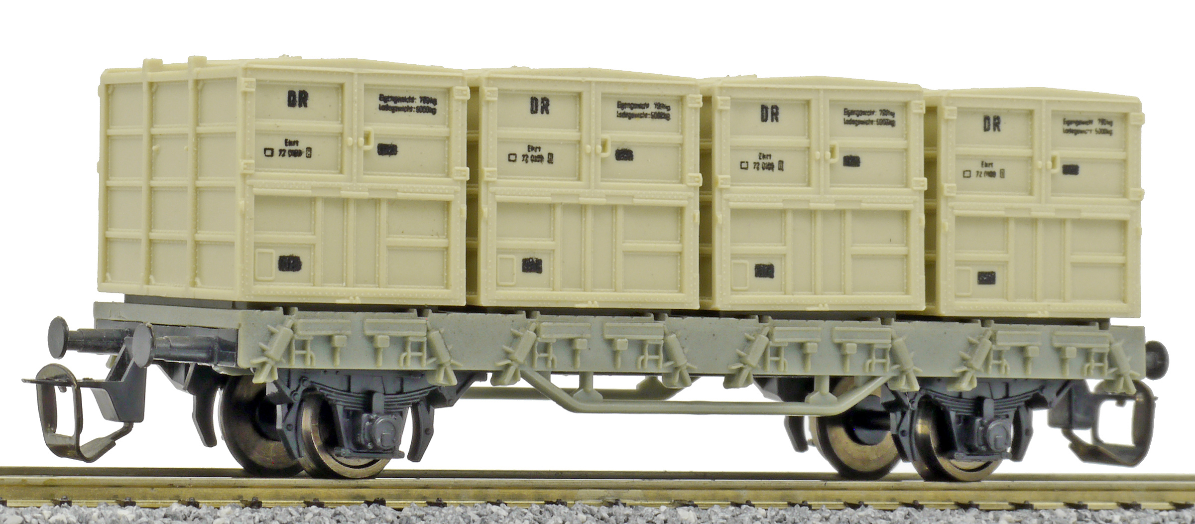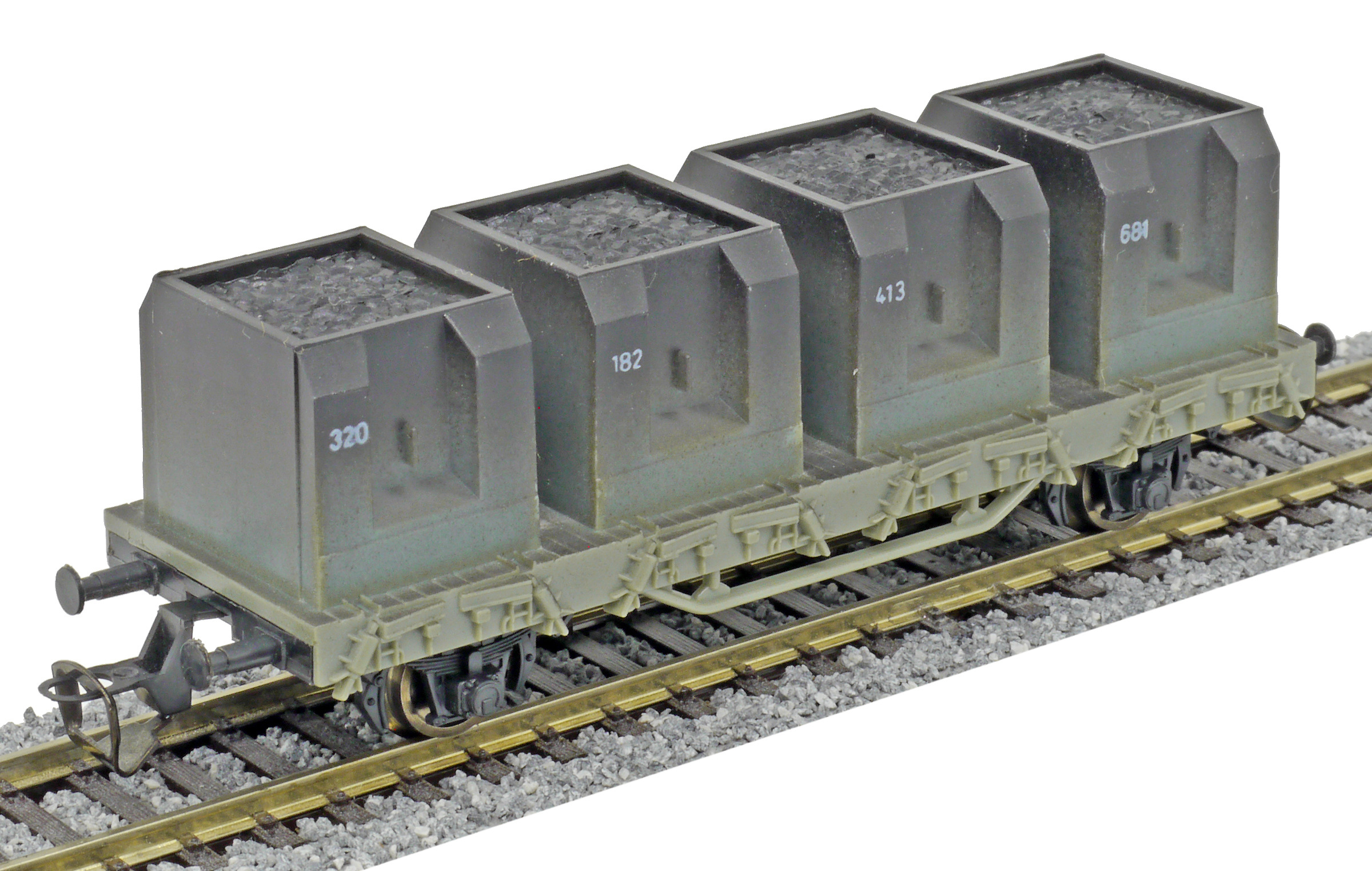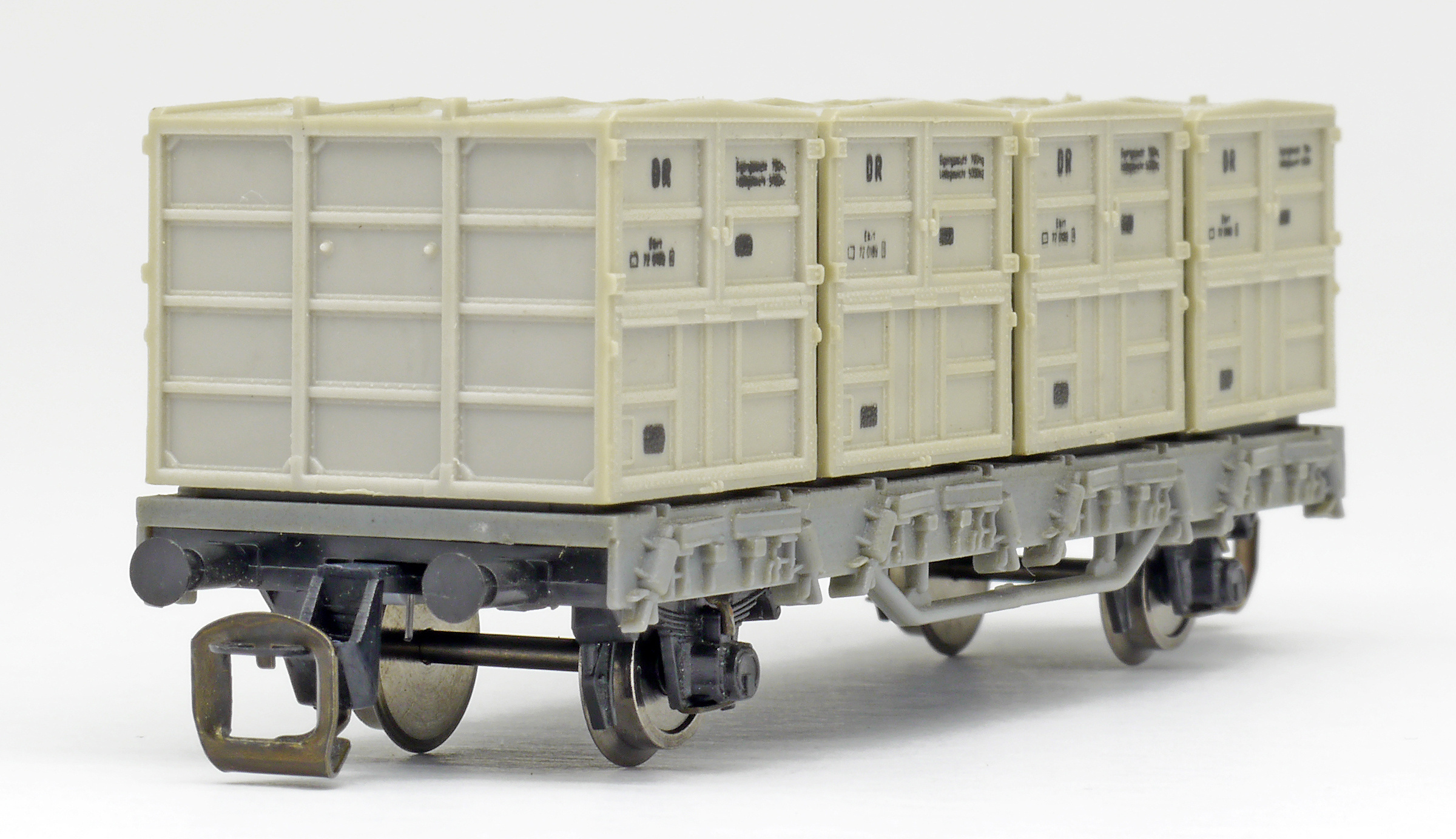nákladní vůz šedý se čtyřmi přepravními kontejnery