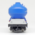 | nákladní samovýsypný vůz šedý s modrými nádobami a s logem „Lovochemie“ |