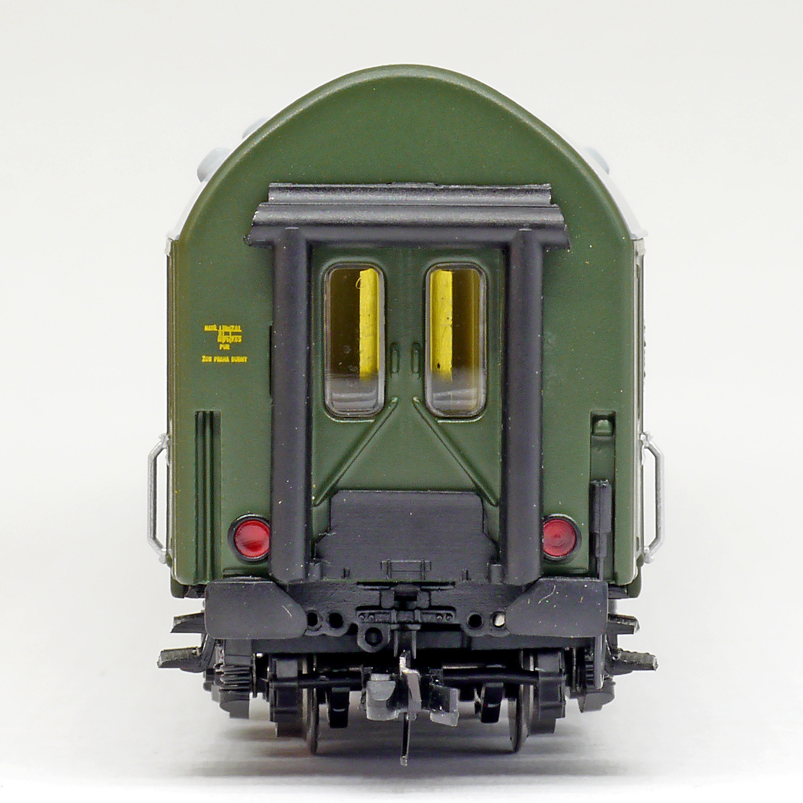 | rychlíkový vůz zelený s šedou střechou 2. tř. a zavazadlovým oddílem |