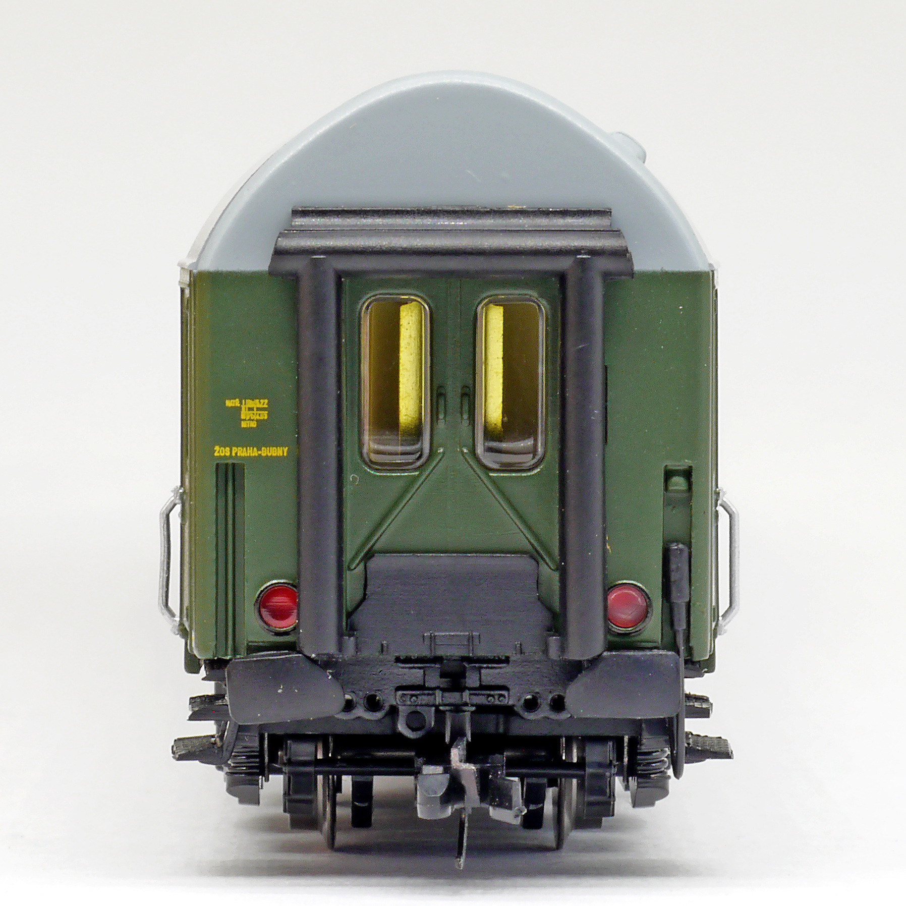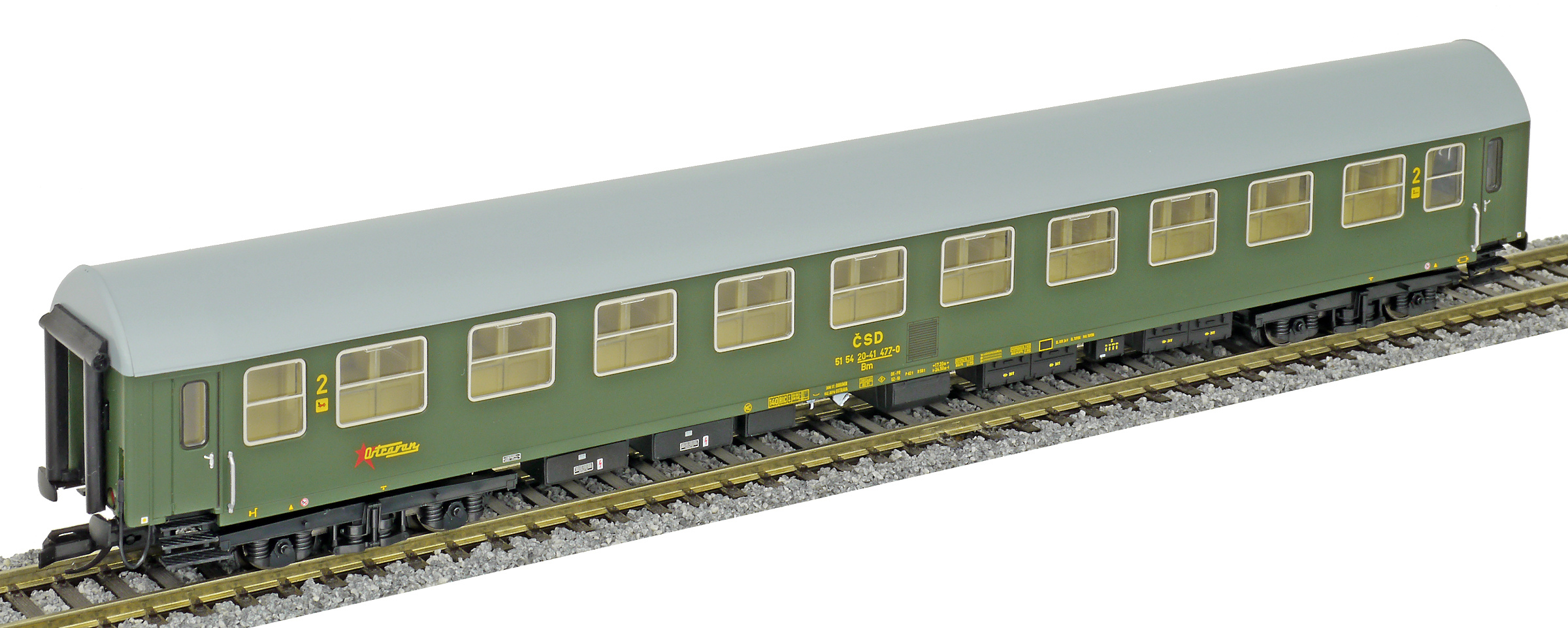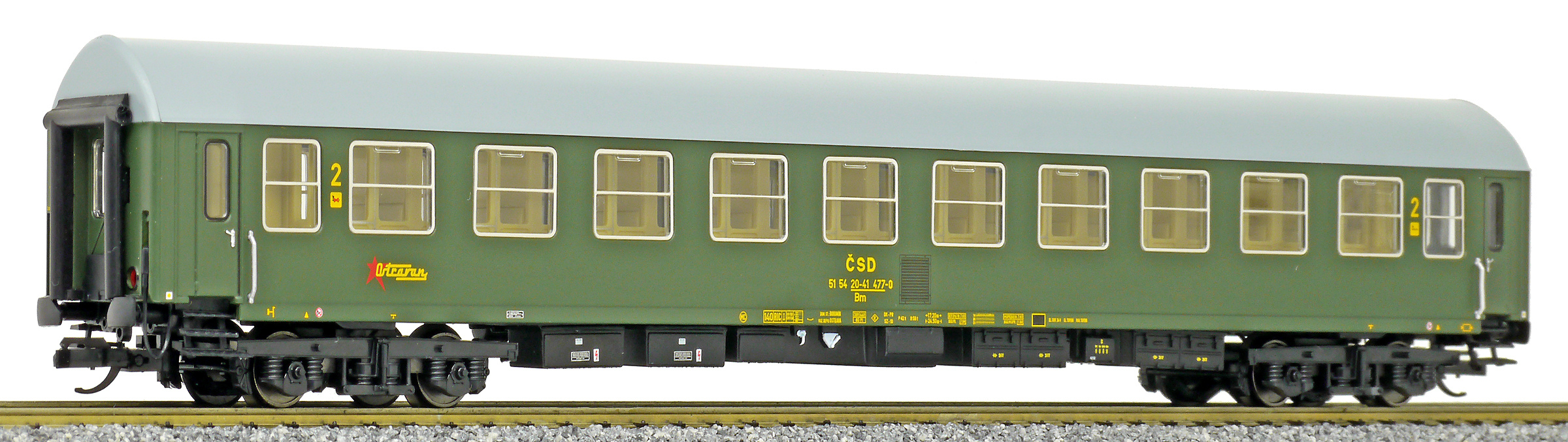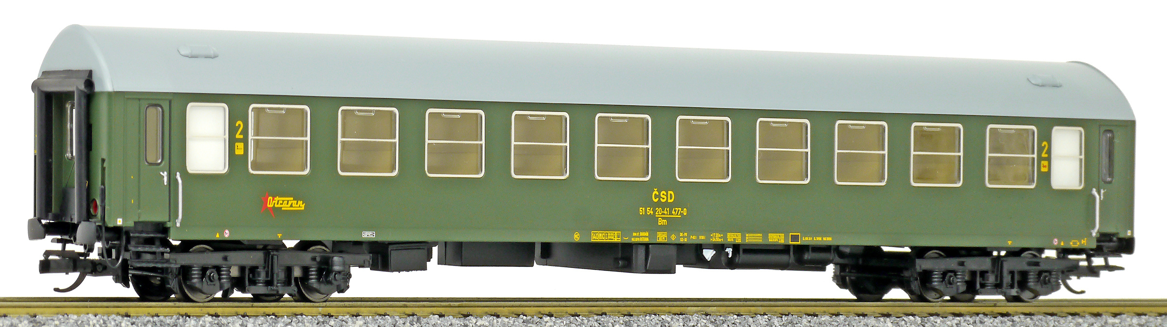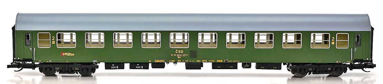 | rychlíkový vůz zelený s šedou střechou 2. tř. „Ostravan“ |