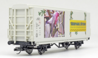 | krytý nákladní vůz s posuvnými stěnami a s reklamním potiskem „Mein Zoo” |