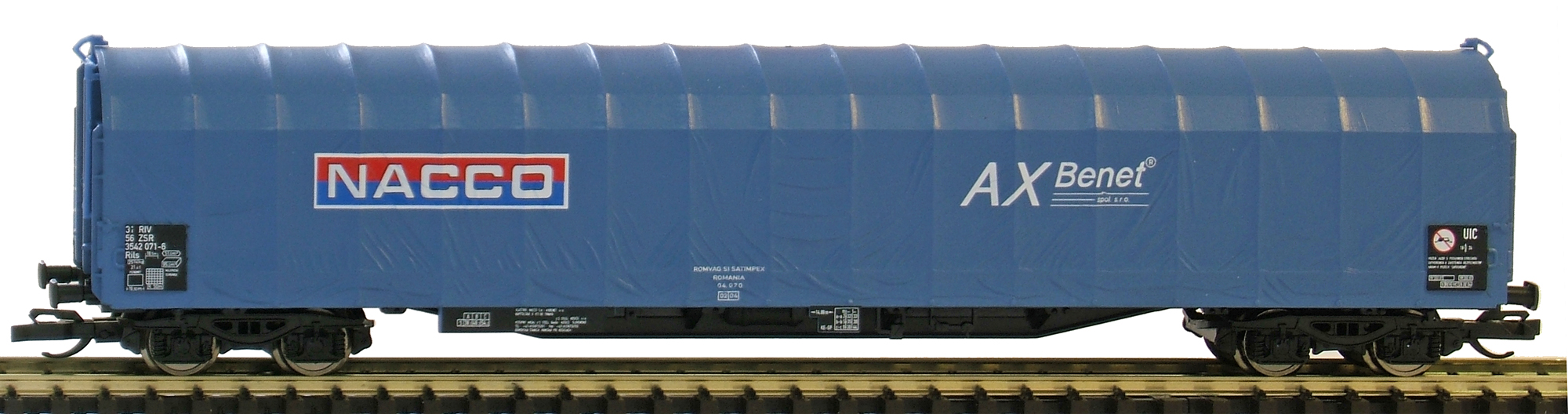| • 31 56 3542 071-6 | → | nákladní, s podvozky, pevný rozchod, ve vlastnictví železniční správy, RIV, PPV |