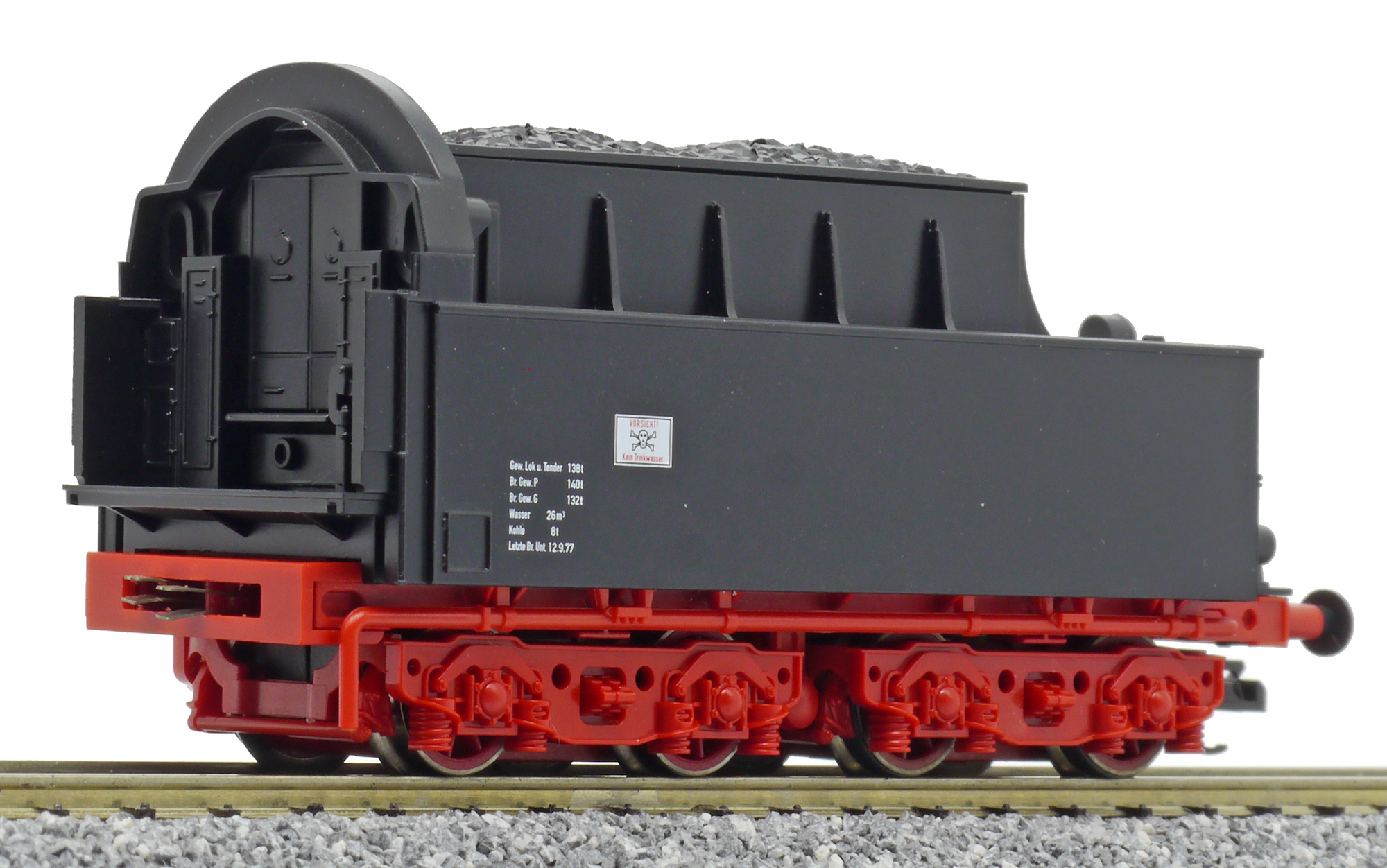 Popis   parní lokomotiva černá s červeným pojezdem a kouřovými plechy