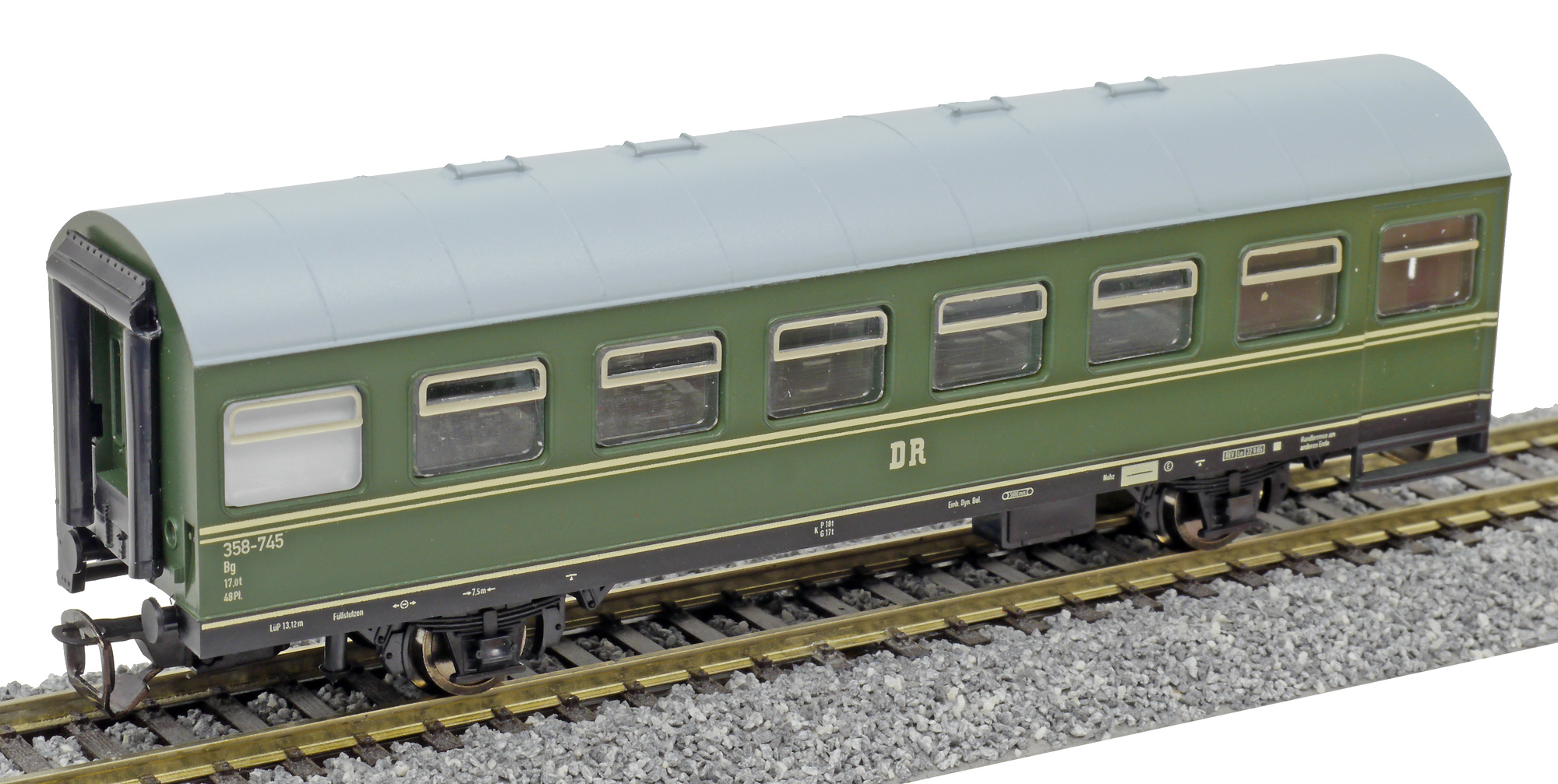 měřítko 1:120 - rozchod kolejí 12 mm vnitřní interiér vozu kinematika krátkého spřáhla (KKK) podle normy NEM 358 110 mm - celková délka modelu přes nárazníky 2 - celkový počet náprav nebo rozložení náprav