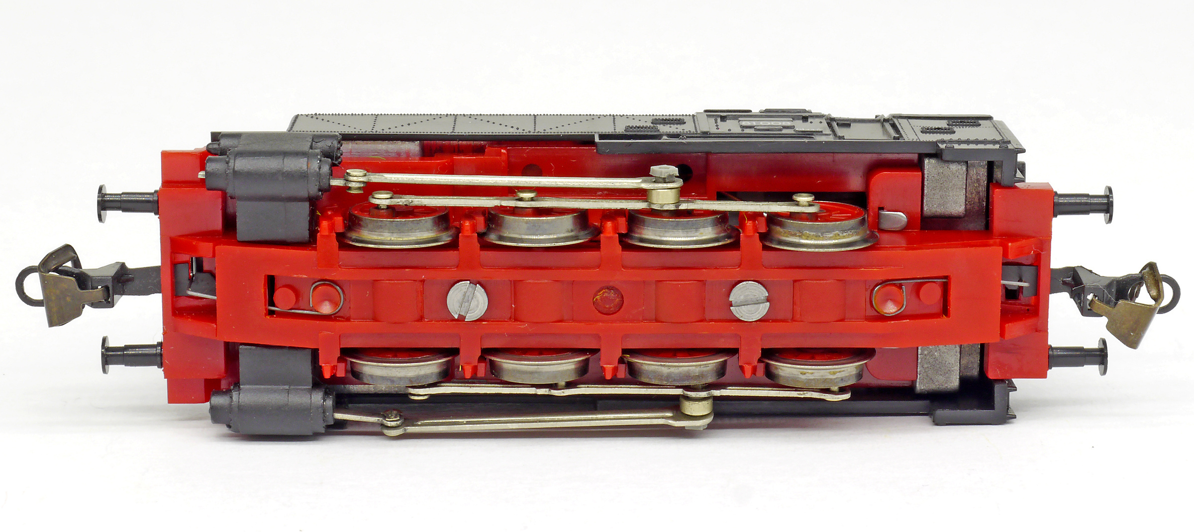 Popis   parní lokomotiva černá s červeným pojezdem