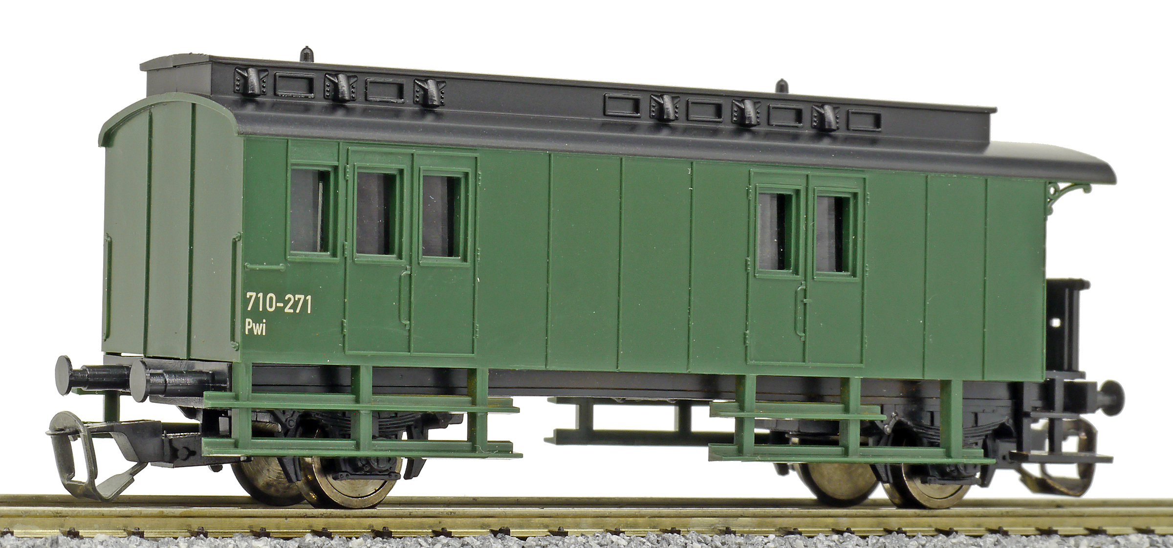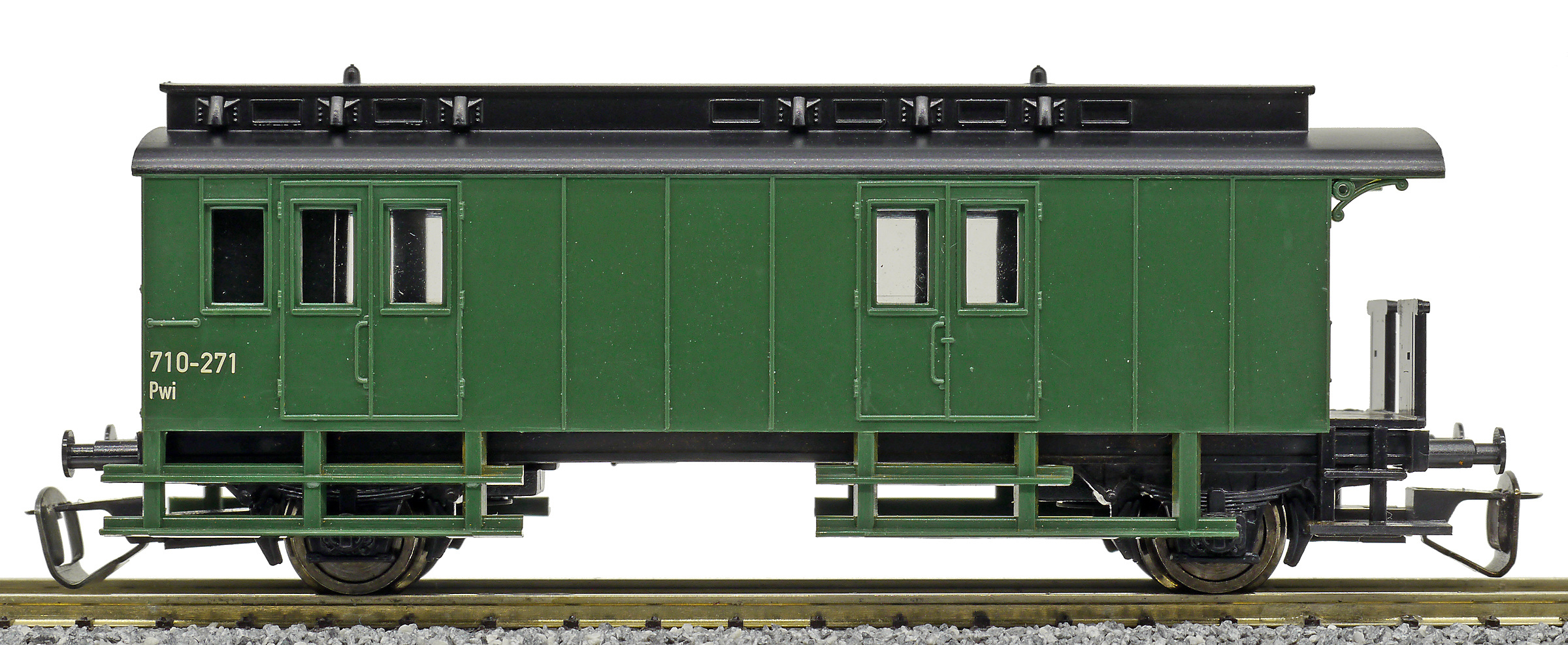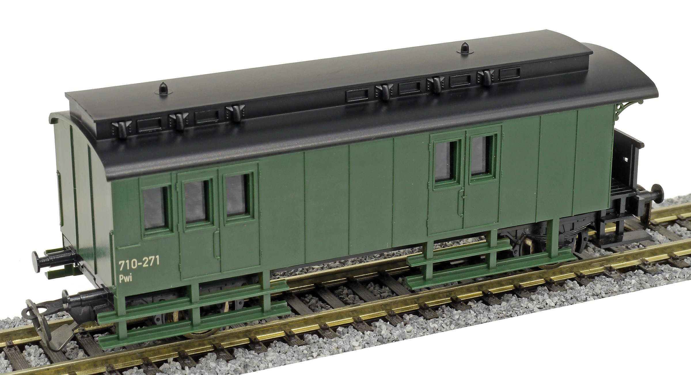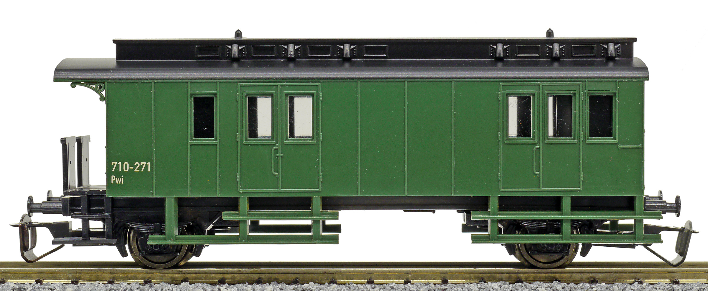 Popis   zavazadlový vůz zelený s černou střechou