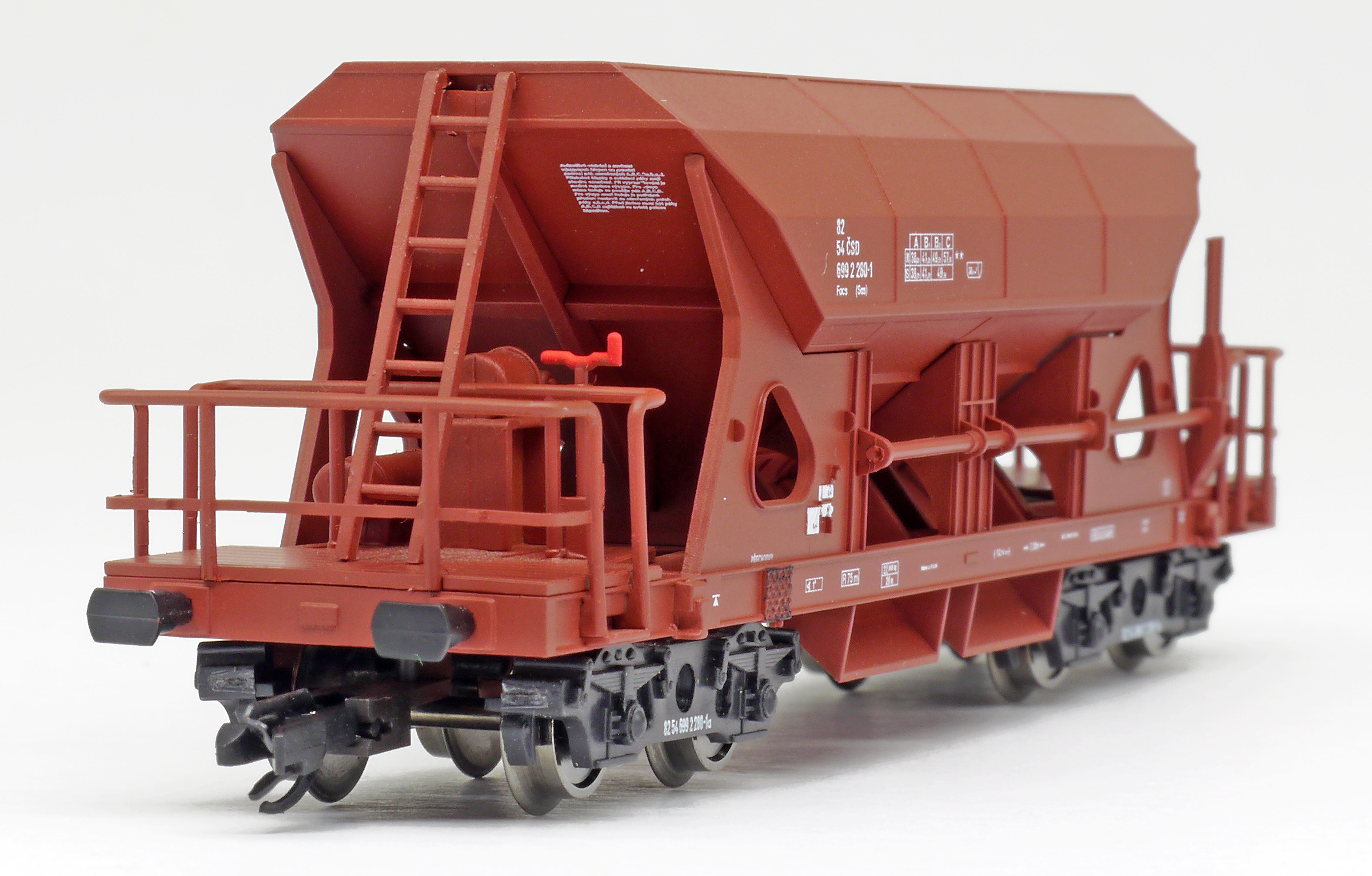 | nákladní samovýsypný vůz červenohnědý s černými podvozky |