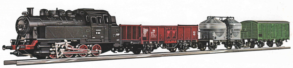 set parní lokomotivy BR 81 a tří nákladních vozů