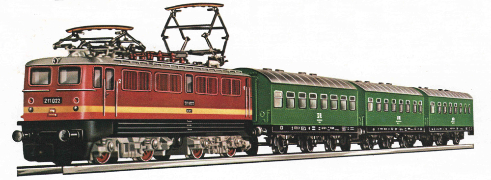 | set dieselové lokomotivy BR 211 a tří rekonstruovaných osobních vozů |