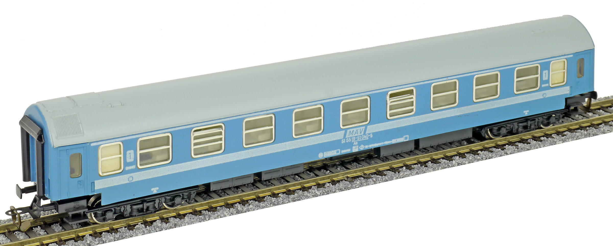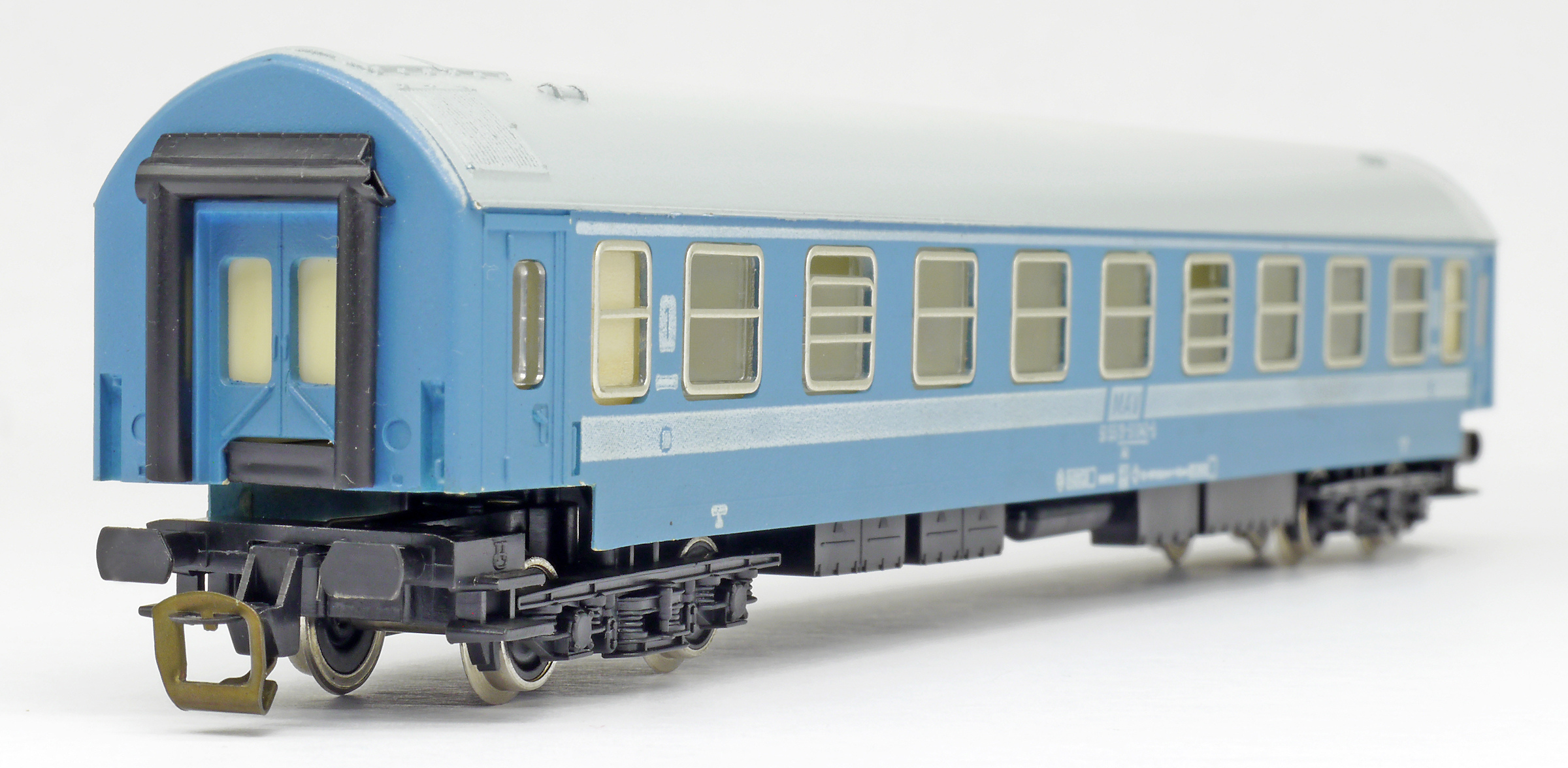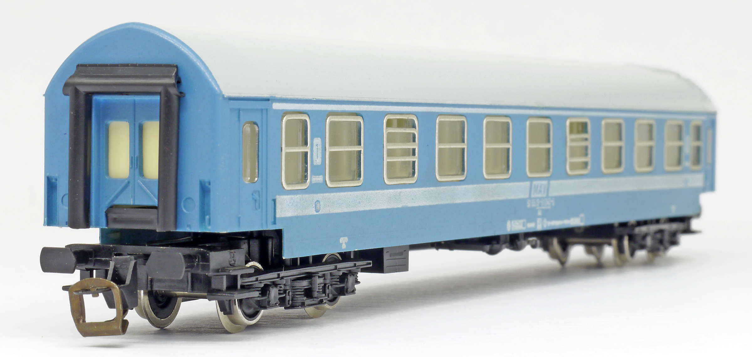 Popis   rychlíkový vůz modrý s šedou střechou 1. tř.