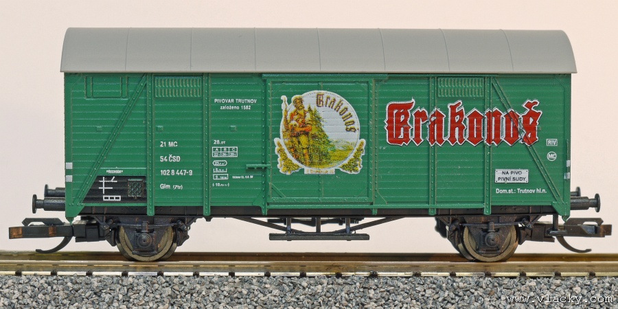 | • 21 54 102 8 447-9 | → | nákladní, nezávislé nápravy, pevný rozchod, ve vlastnictví železniční správy, RIV, PPV |