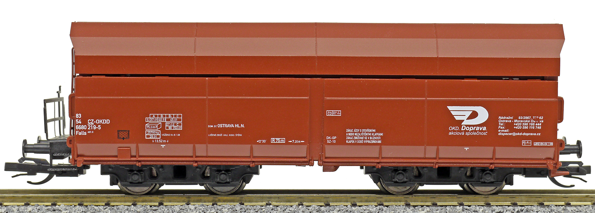 Popis   nákladní samovýsypný vůz červenohnědý „OKD Doprava“