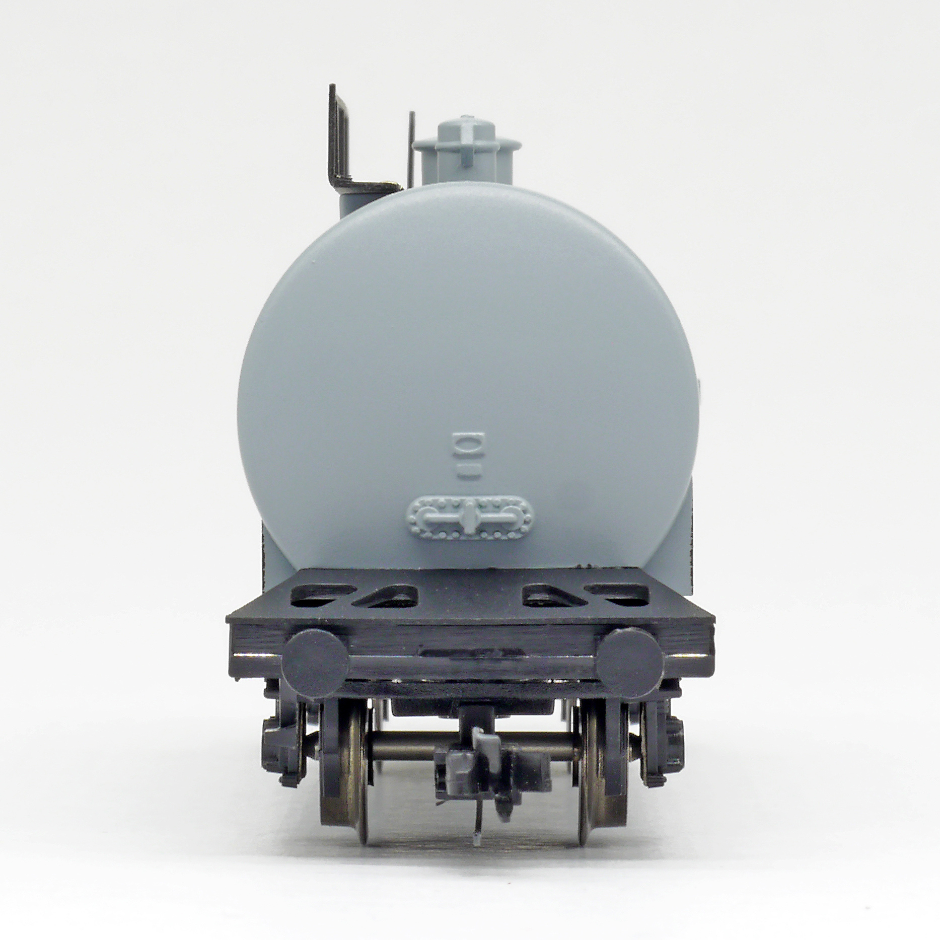 | kotlový vůz šedý s černým pojezdem do pracovního vlaku |