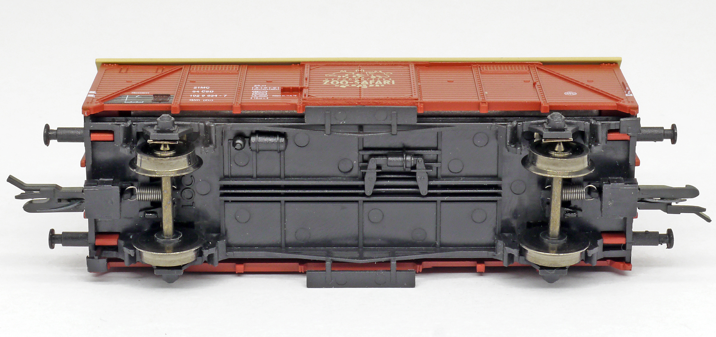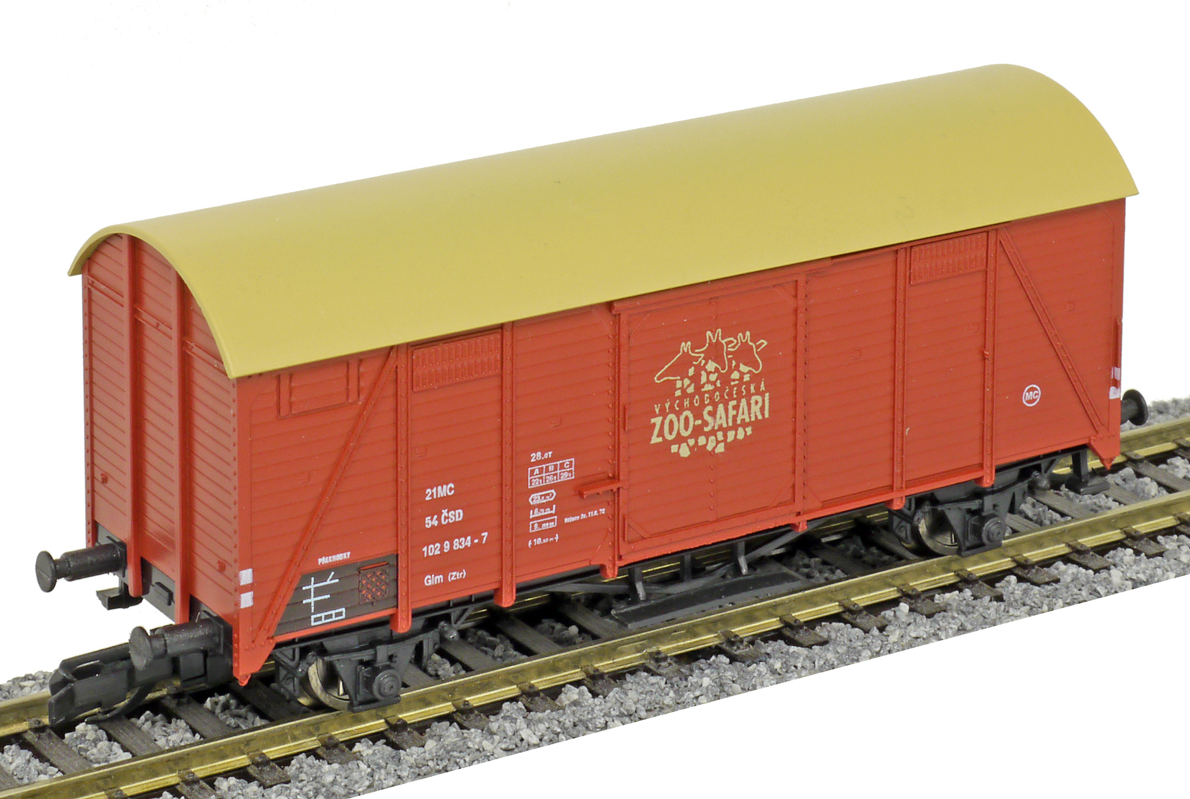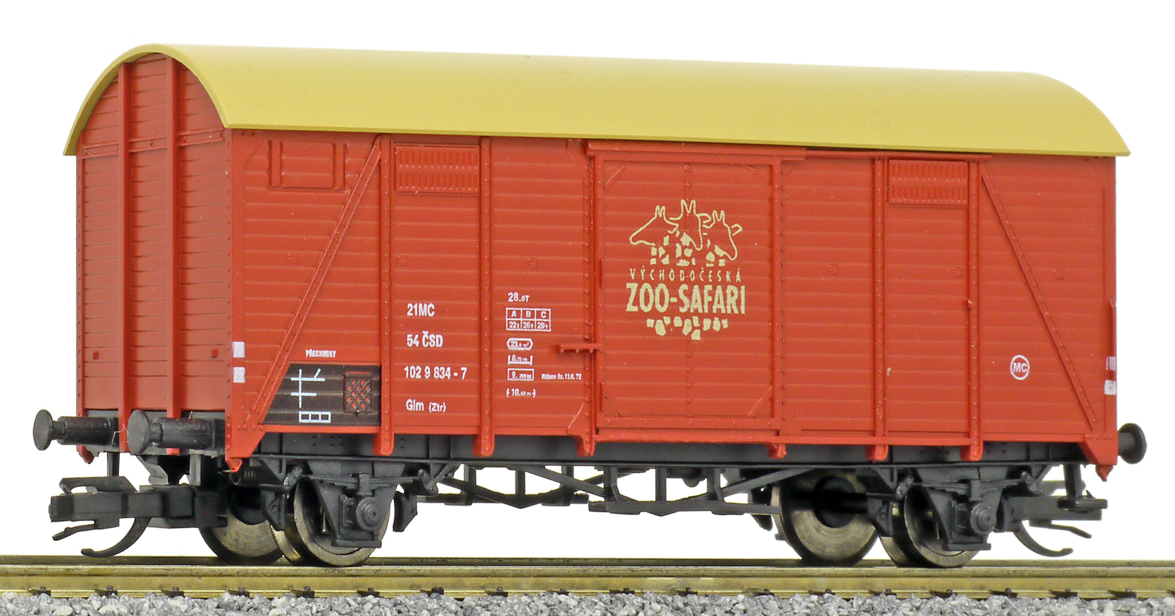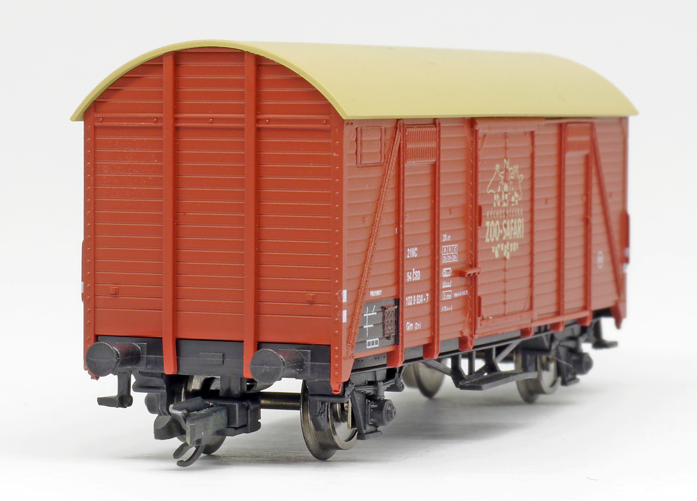 | krytý nákladní vůz červenohnědý s okrovou střechou „ZOO - Safari” |