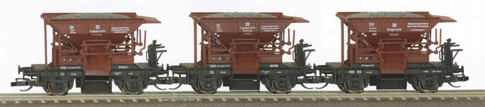 | set tří hnědých samovýsypných vozů typu Talbot s nákladem |