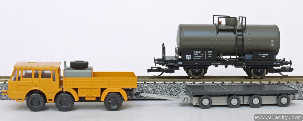 | tmavá cisterna s tahačem Tatra 813 a podvalníkem |