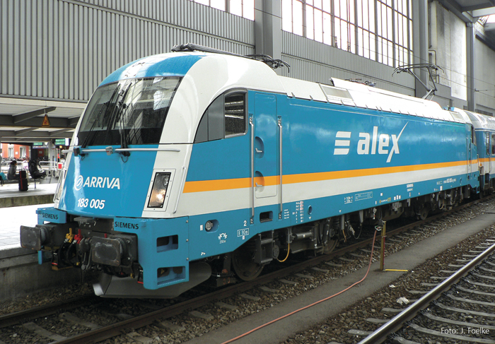 | elektrická lokomotiva v barevném schematu „ALEX“ |