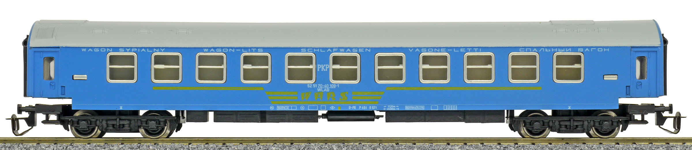 | lůžkový vůz modrý s šedou střechou „WARS“ |