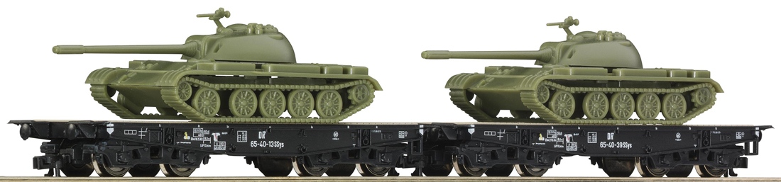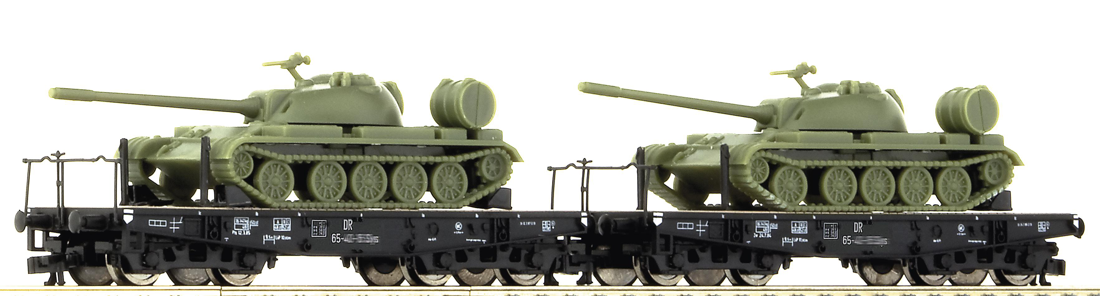 | set dvou plošinových nákladních vozů ložených tanky T55 |