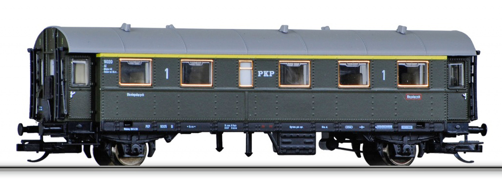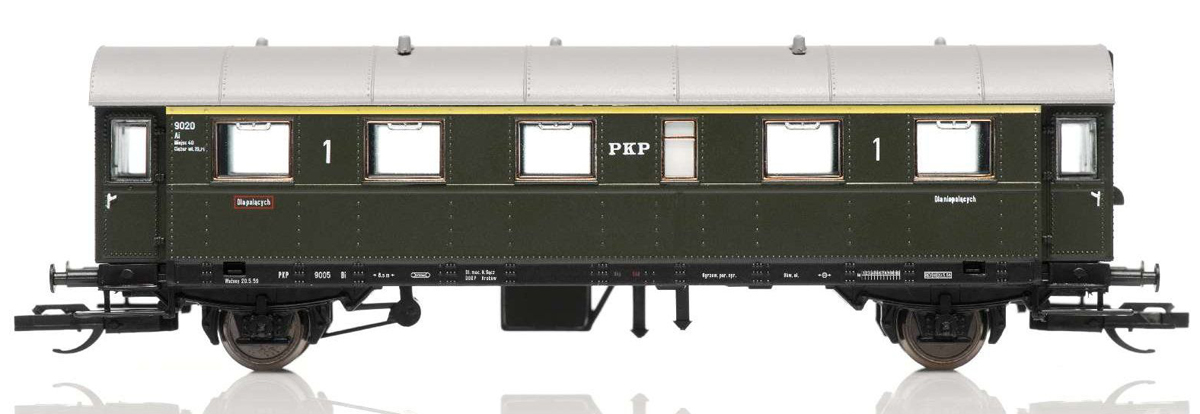 | osobní vůz zelený s šedou střechou 1. tř., st. Nowy Sącz |