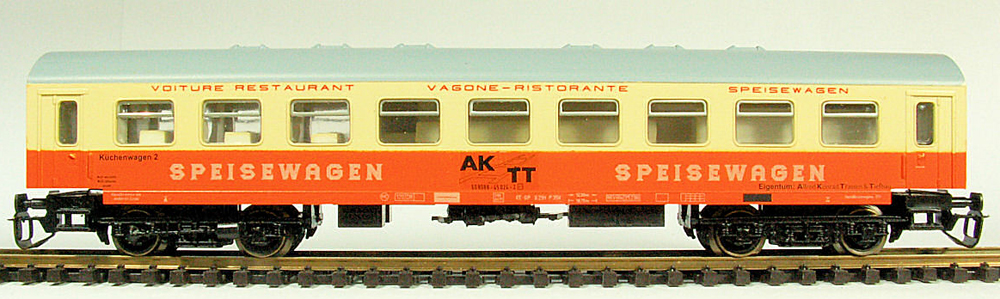 | oranžový-slonová kost s šedou střechou jídelní vůz "AKTT" |