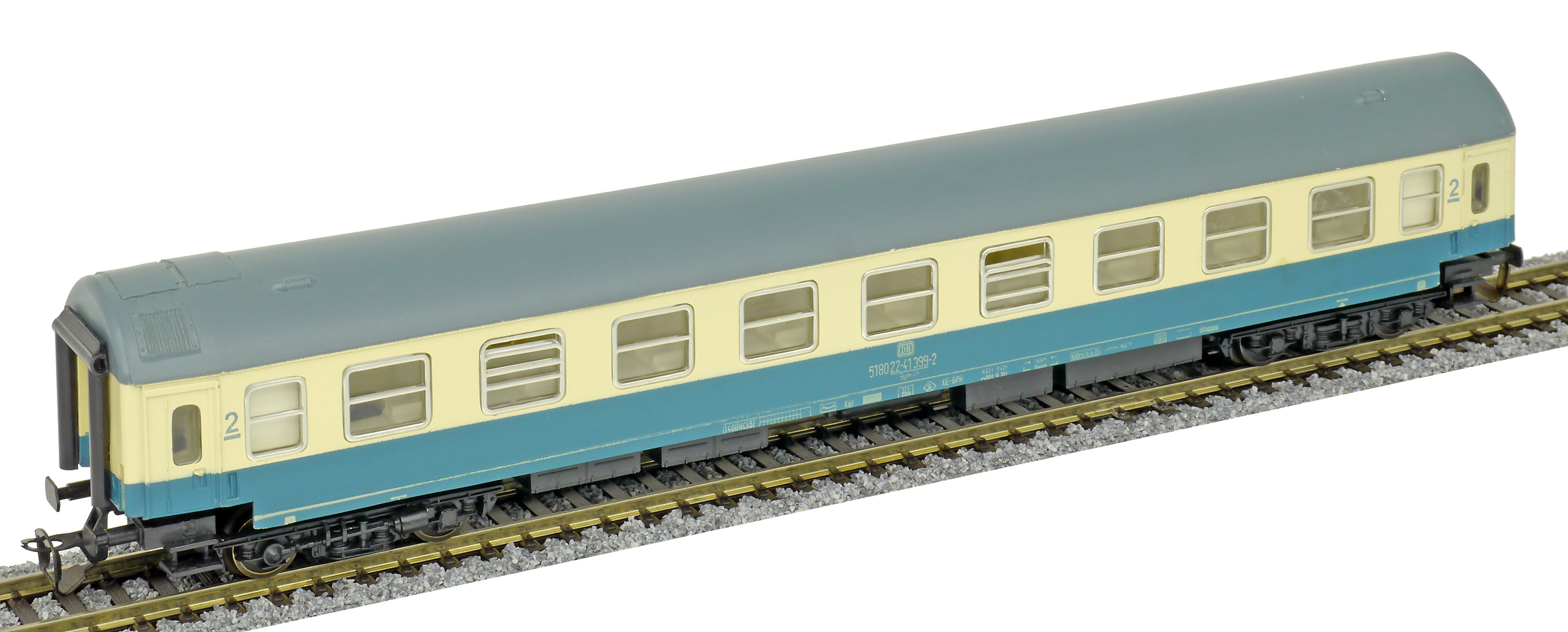 | rychlíkový vůz oceánově modrý-slonová kost s šedou střechou 2. tř. |