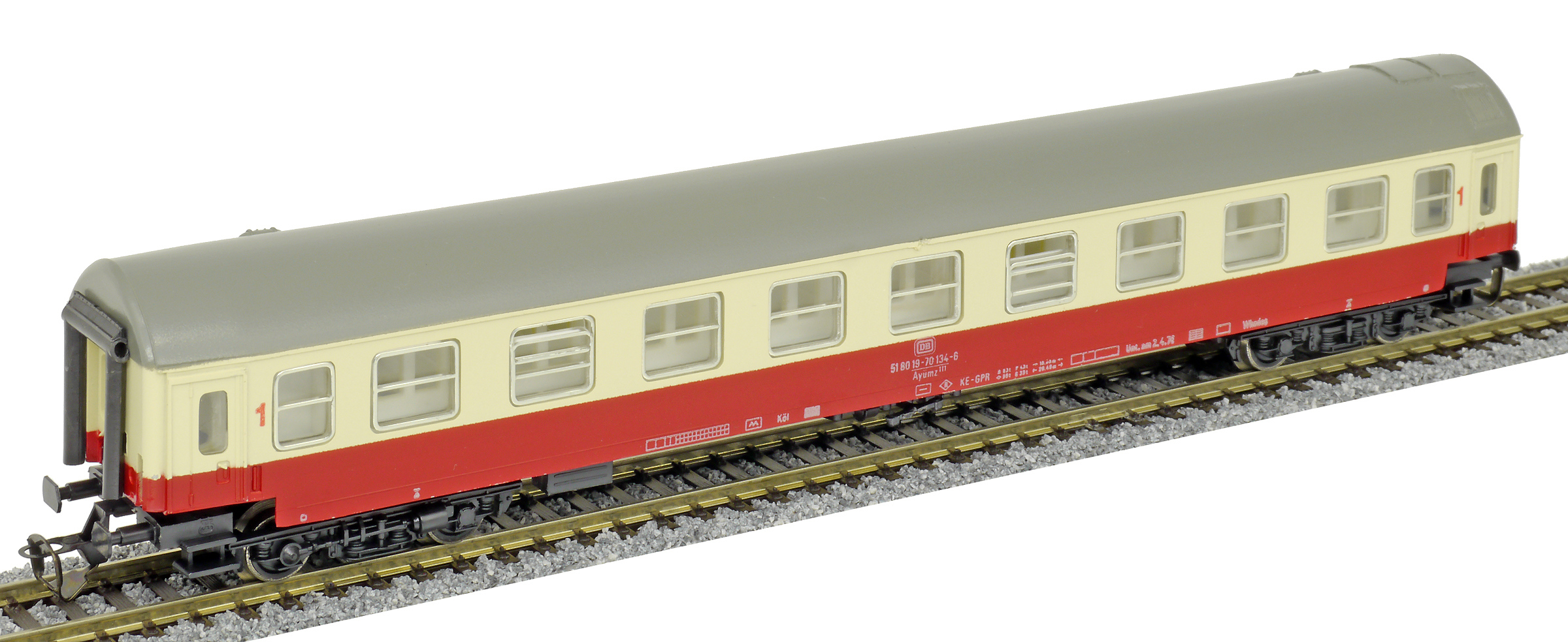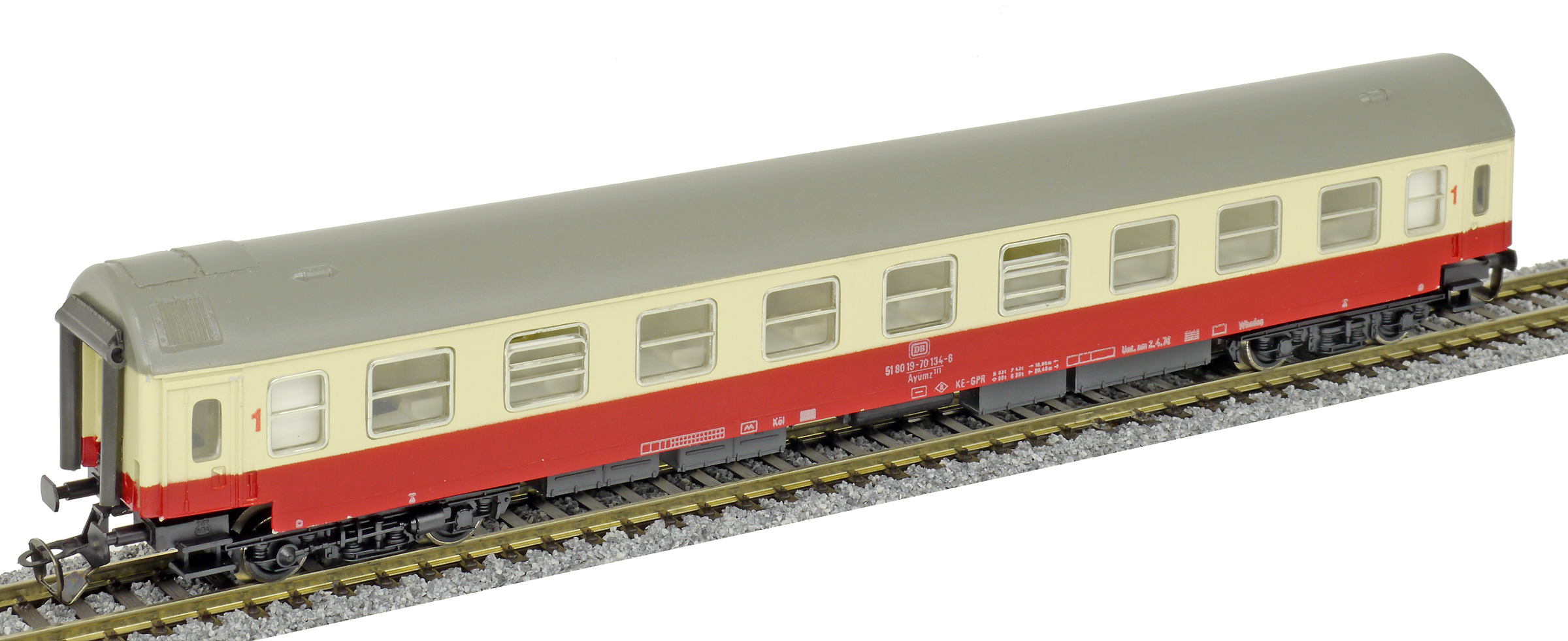 | rychlíkový vůz červený-slonová kost s šedou střechou 1. tř. |