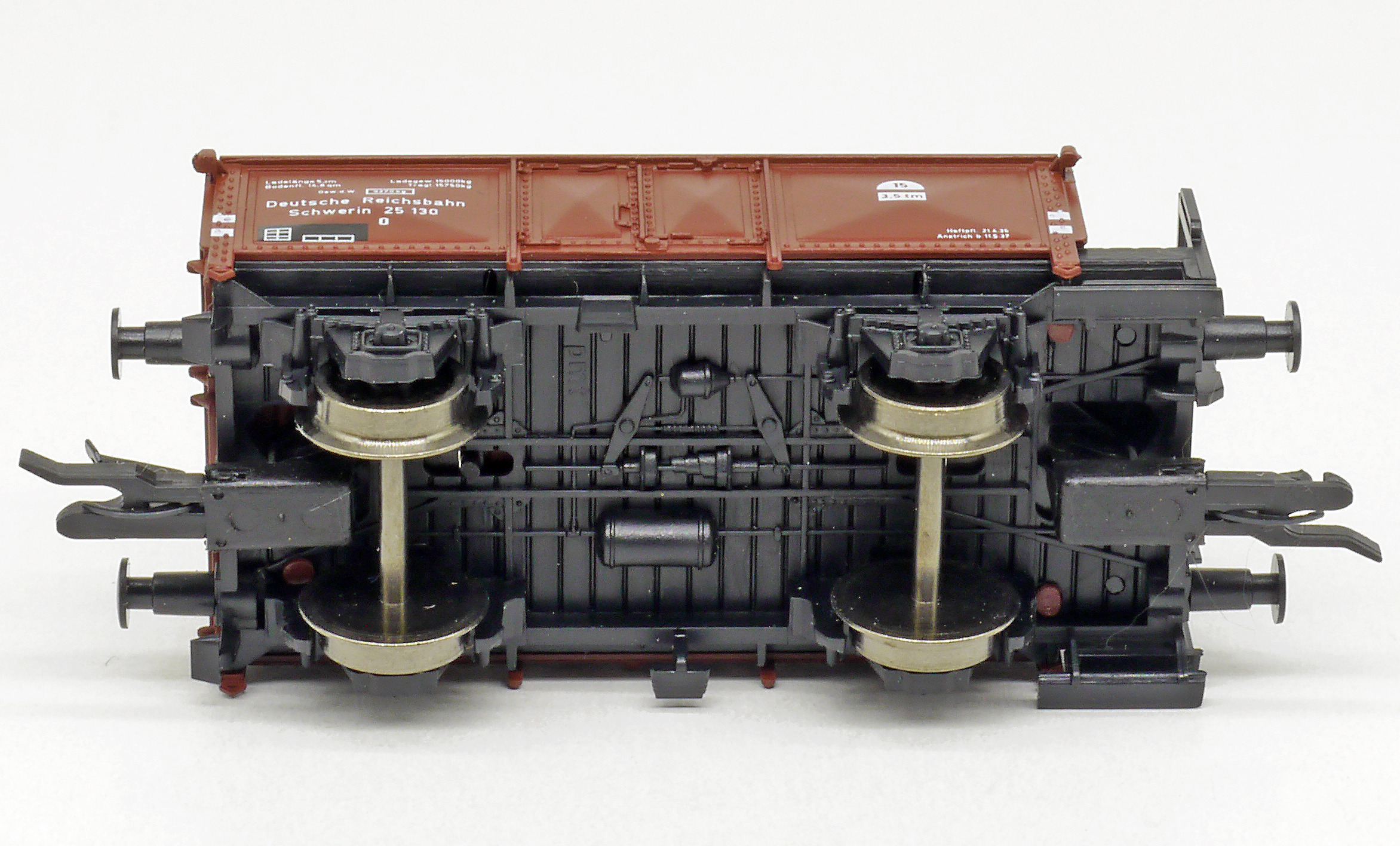 měřítko 1:120 - rozchod kolejí 12 mm kinematika krátkého spřáhla (KKK) podle normy NEM 358 61,5 mm - celková délka modelu přes nárazníky