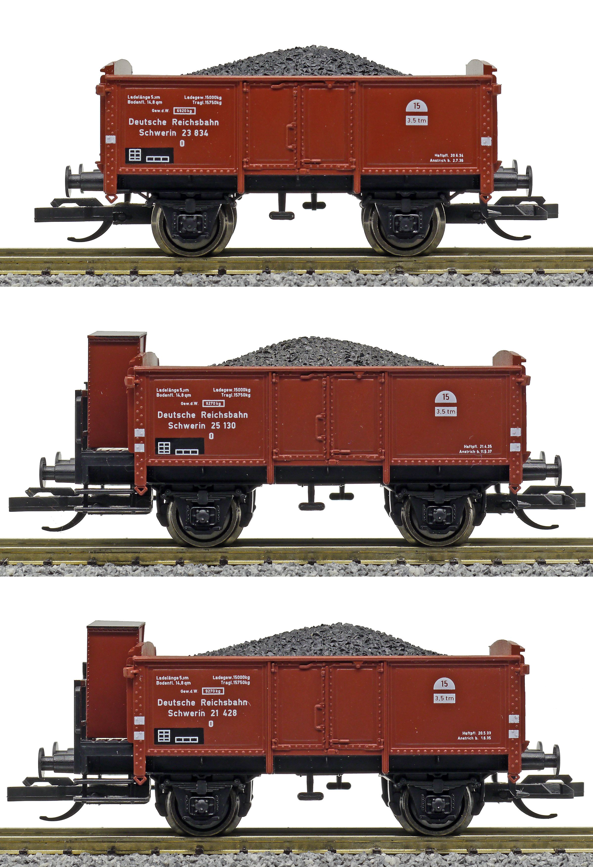 | set tří otevřených vozů s nákladem uhlí |