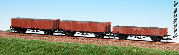 | set tří nákladních vozů s nákladem hnědého uhlí |
