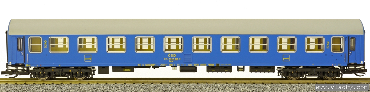 | lůžkový vůz modrý s šedou střechou |